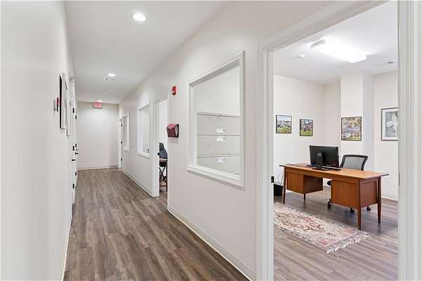 Situated on +/- 2.82 acres, this impressive commercial property offers a rare combination of modern office space and functional warehouse facilities. The main building features approximately +/-3,010 square feet of first-floor office space, including eight private offices, a welcoming reception area, a conference room, a dedicated breakroom, and two bathrooms. Upstairs, you'll find approximately +/-2,986 square feet of open-concept space, ideal for meetings, training sessions, or team events with two additional bathrooms. In addition to the office space areas, there is approximately +/-2,990 square feet of insulated warehouse space with an impressive +/-24-foot ceiling height, equipped with powered exhaust fans. A second smaller storage/warehouse facility of +/-1,000-square feet is also insulated, features powered exhaust fans and an additional bathroom.