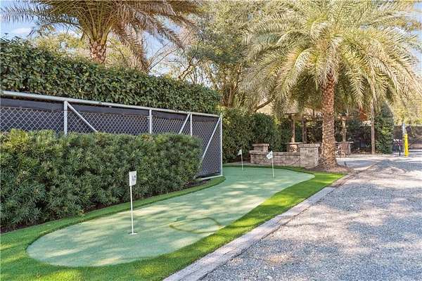 A putting green, fire pit, and a tastefully crafted front entrance welcomes employees/patrons. Two secured, code-operated gates flank the main building. The property allows ample space for a tractor trailers to pull through the side gates, maneuver behind the building, or complete a full turnaround with ease.