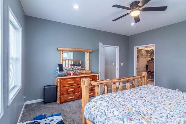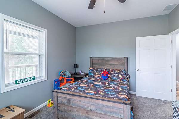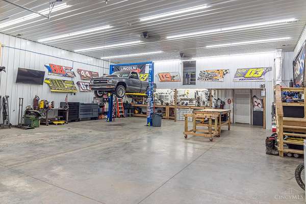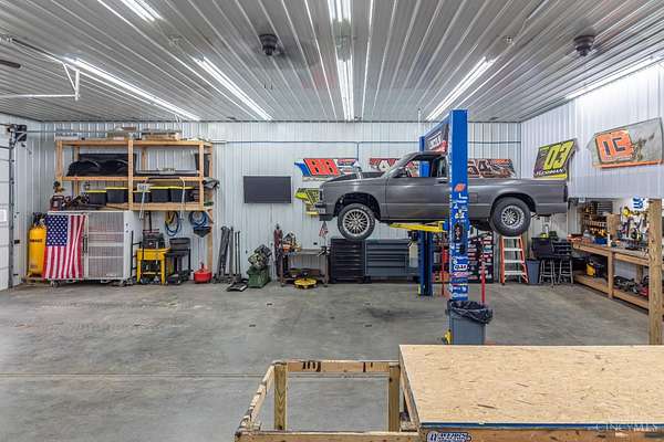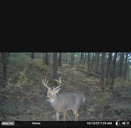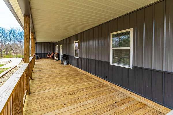 Built in 2022, this 3BR, 2.5BA home sits on approx. 10 wooded acres, offering modern living with privacy. Features an open-concept layout with spacious living area. Primary suite includes walk-in closet and adjoining bath. Oversized attached garage is heated and cooled, with half bath and loft storageideal for workshop or hobbies. Additional detached building provides extra storage or garage space. Covered front porch overlooks peaceful surroundings, while a small rear deck leads to a play area and wooded acreage. Property offers rolling terrain with trails, a small water hole, and abundant wildlife including whitetail deer. Great opportunity for those seeking space, recreation, and a private setting.