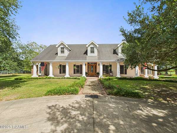 IN-GROUND POOL + ACREAGE! Don't let the 'New Iberia' address fool you - this stunning custom home is located in the desirable Broussard/Cade area, high on the Coteau Ridge and sitting on just under 4 acres of peaceful country beauty. Built to superior standards, this two-story country French home features 2x6 fully sheeted interior and exterior walls, 7-ft custom interior doors, and one-of-a-kind woodwork crafted from 100+ year-old Louisiana cypress milled onsite. The classic layout includes a grand two-story living room, foyer, and balcony. The kitchen was thoughtfully designed with dual work triangles for seamless cooking and prep, plus a large walk-in pantry with its own refrigerator. The oversized primary suite is a true retreat, featuring dual bathrooms and closets. Two new Trane A/C units have just been installed in the main home and guest/pool house. Step outside to your own outdoor paradise - 20x40 gunite pool with two water features and a new pump, large guest house, stocked fishing pond, barn, and gardening shed. A 3-car garage with climate-controlled workshop adds even more functionality. This private escape offers quick access to Youngsville, Broussard, Hwy 90, and is only minutes from ESA, Albertsons, Walmart, and the new First Solar Plant. An additional 1.8-acre tract is also available for purchase. Quality craftsmanship, thoughtful design, and an unbeatable location - don't miss this one-of-a-kind custom home!