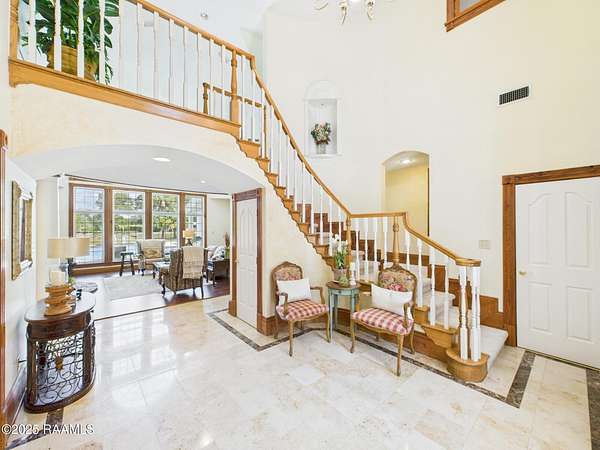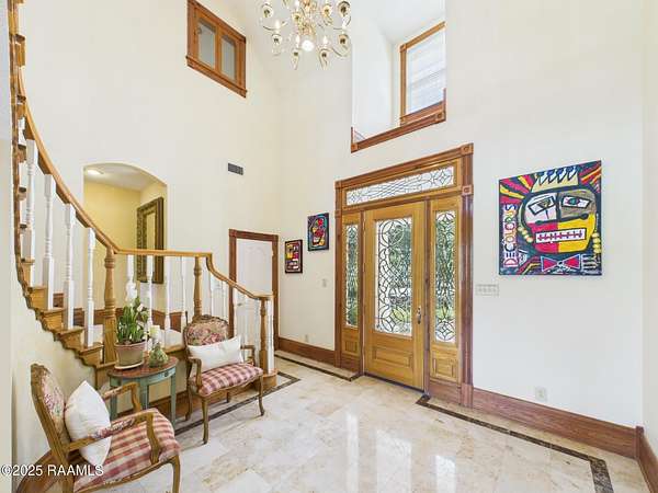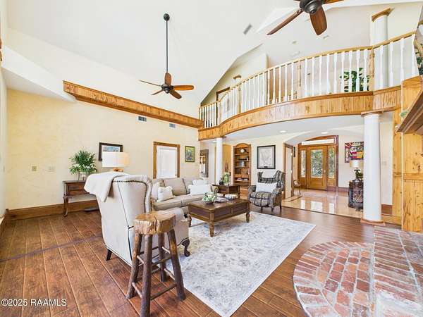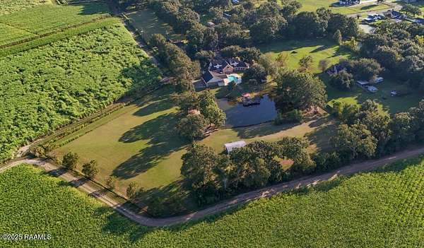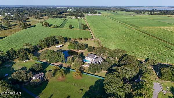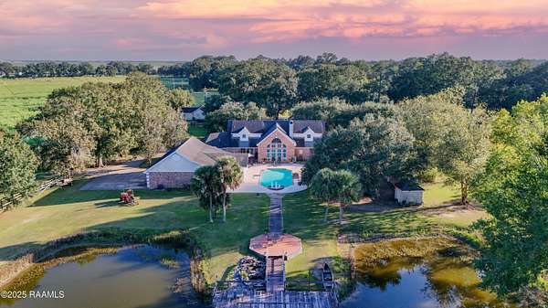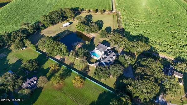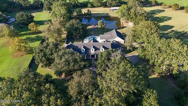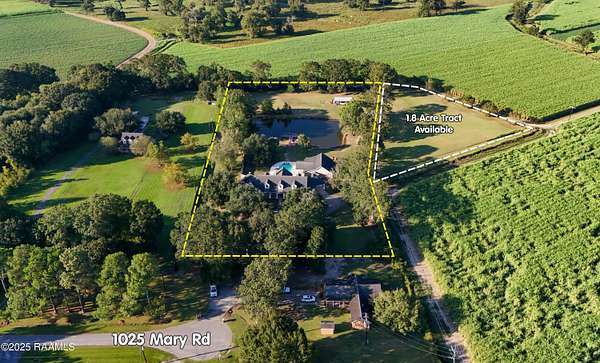 IN-GROUND POOL + POOL/ GUEST HOUSE + ACREAGE! Don't let the 'New Iberia' address fool you - this stunning custom home is located in the desirable Broussard/Cade area, high on the Coteau Ridge and sitting on just under 4 acres of peaceful country beauty. Built to superior standards, this two-story country French home features 2x6 fully sheeted interior and exterior walls, 7-ft custom interior doors, and one-of-a-kind woodwork crafted from 100+ year-old Louisiana cypress milled onsite. The classic layout includes a grand two-story living room, foyer, and balcony. The kitchen was thoughtfully designed with dual work triangles for seamless cooking and prep, plus a large walk-in pantry with its own refrigerator. The oversized primary suite is a true retreat, featuring dual bathrooms and closets. Two new Trane A/C units have just been installed in the main home and guest/pool house. Step outside to your own outdoor paradise - 20x40 gunite pool with two water features and a new pump, large guest house, fishing pond, barn, and gardening shed. A 3-car garage with climate-controlled workshop adds even more functionality. This private escape offers quick access to Youngsville, Broussard, Hwy 90, and is only minutes from ESA, Albertsons, Walmart, and the new First Solar Plant. An additional 1.8-acre tract is also available for purchase. Quality craftsmanship, thoughtful design, and an unbeatable location - don't miss this one-of-a-kind custom home!