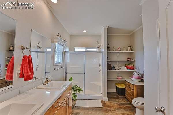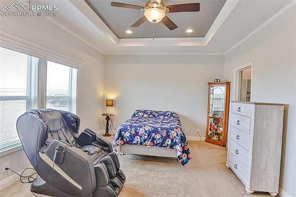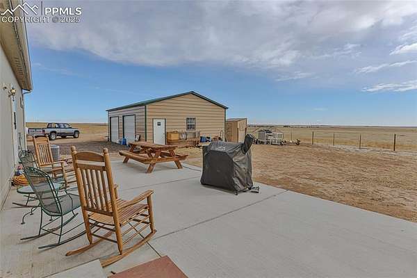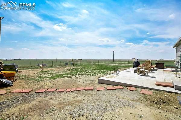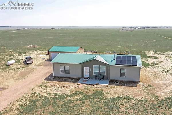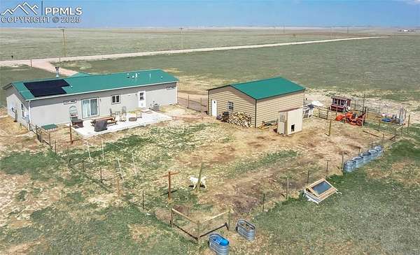 Tranquility awaits! Built in 2021 by Clayton Homes, this beautiful, single-level home offers an open floor plan and breathtaking views in every direction, all while being approximately 30 minutes from Peterson Space Force Base. The spacious living room flows into a large kitchen featuring 42" cabinets, a center island, and a generous pantry. The dining area/eat-in kitchen provides walk-out access to the backyard. The primary bedroom is large enough to accommodate a king-size bed with room for a sitting area and includes an en-suite bathroom with a walk-in shower. Secondary bedrooms are comfortably sized and offer walk-in closets. Situated on 40 acres, the property boasts stunning mountain views from the front of the home, along with a designated dug-out shooting area located on the northeast corner of the land. Additional features include a wood-burning fireplace and solar panels. A must-see.