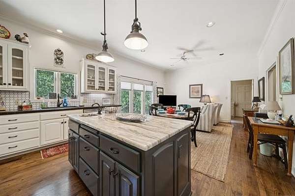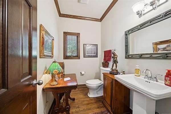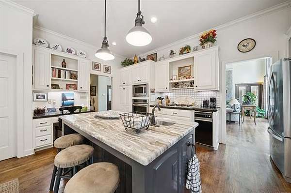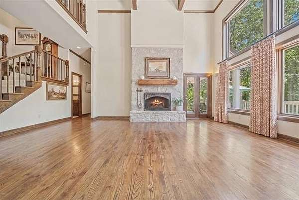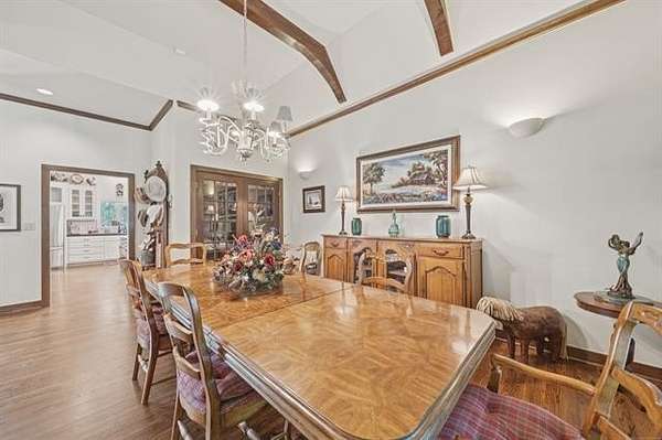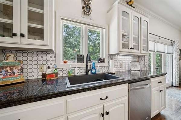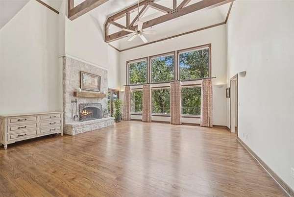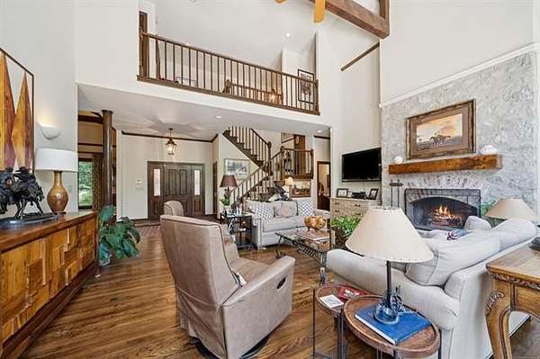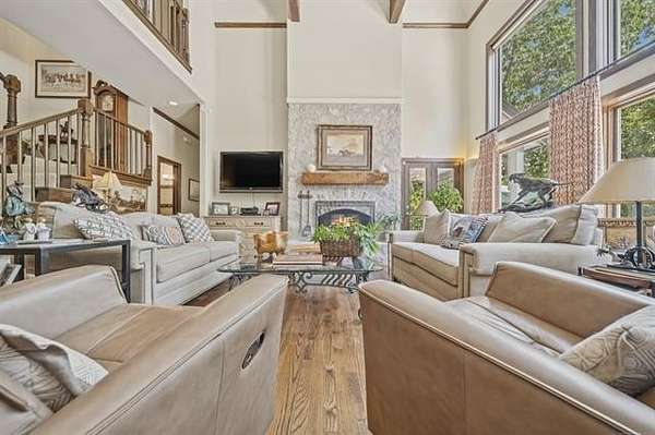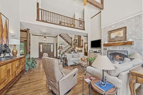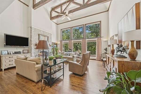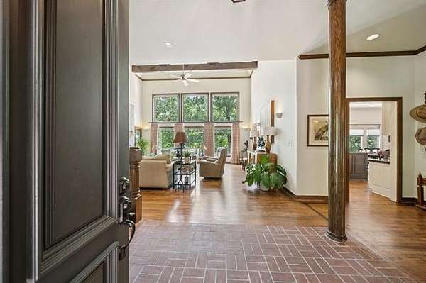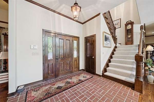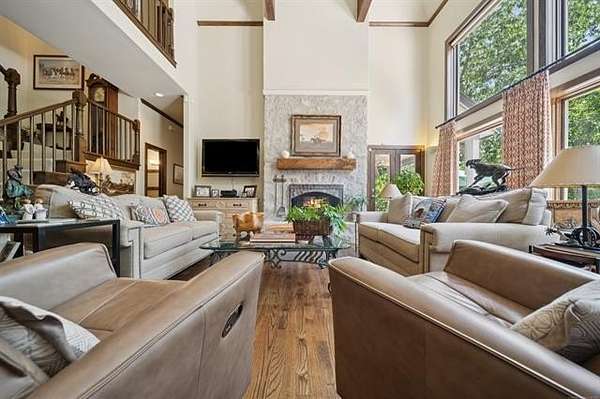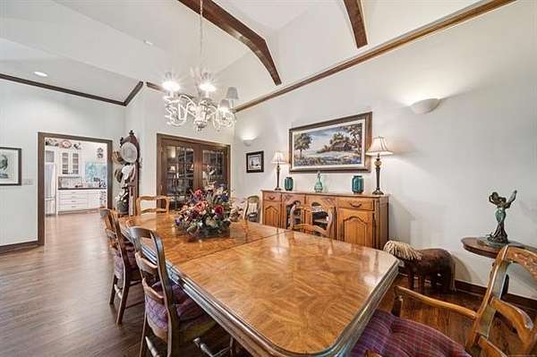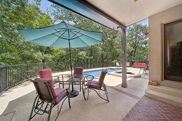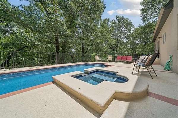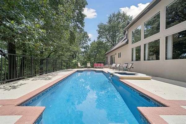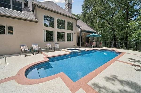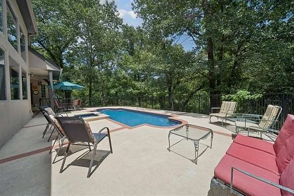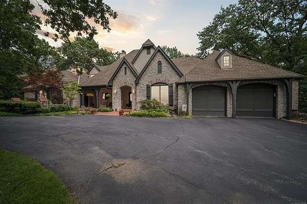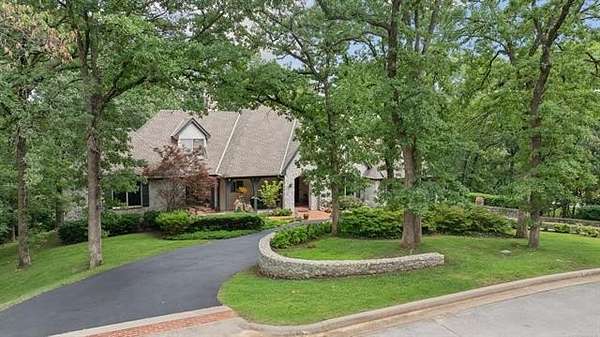 Tucked into a secluded cul-de-sac and surrounded by mature trees, this one-owner custom home offers a rare opportunity to experience private, resort-style living just minutes from Tulsa. Thoughtfully designed and meticulously maintained, the home blends architectural character with exceptional comfort and functionality. Expansive windows frame tranquil pool and treetop views while soaring ceilings and open living spaces create an inviting atmosphere ideal for entertaining. The chef's kitchen features custom cabinetry, stainless appliances, built-in oven, large center island, and generous pantry storage, with seamless access to formal and casual dining spaces. A dedicated study overlooking the outdoor living area provides the perfect work-from-home retreat. The primary suite offers a peaceful escape with spa-inspired bath, dual walk-in closets, and serene backyard views. Upstairs bedrooms feature private baths, while the walkout lower level offers a spacious recreation room with wet bar and direct outdoor access.The backyard is a true private oasis with custom gunite pool and spa, covered patio, multiple entertaining areas, and wooded surroundings providing exceptional privacy. A rare combination of privacy, design, and location.