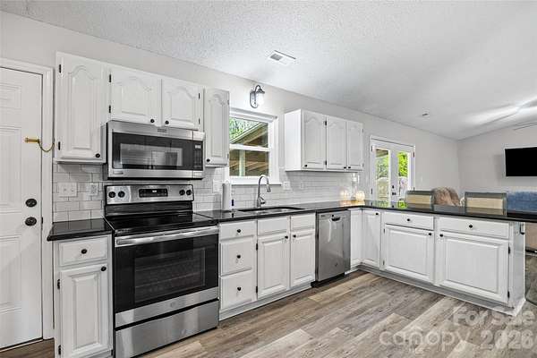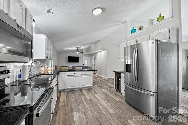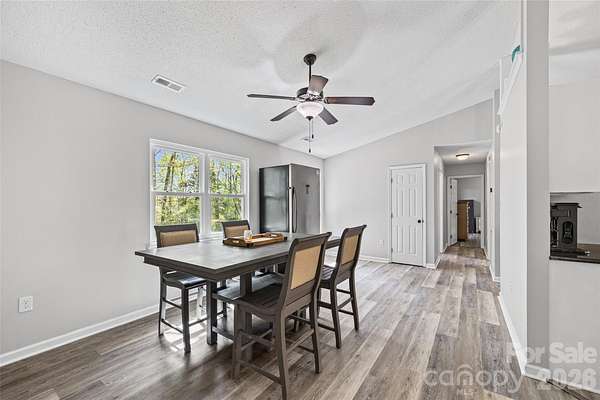 Tucked away on a wooded TWO ACRE lot, this 3-bedroom, 2-bath home offers the perfect blend of privacy, space, and modern updates-with no HOA restrictions. Step inside to a light-filled, airy interior featuring high ceilings and updated LVP flooring that flows throughout the main living areas. The spacious kitchen, dining, and living areas flow seamlessly, allowing for entertaining and functional daily life. The home has been thoughtfully updated with a newer HVAC system, water heater, and well pump, giving you peace of mind and move-in-ready convenience. Outside, enjoy your own private retreat with a fenced yard. The covered deck is a standout feature, offering a great spot to unwind, host gatherings, or take in the natural surroundings year-round. If you've been looking for a property that offers land, privacy, and key updates without the limitations of an HOA, this one checks all the boxes!