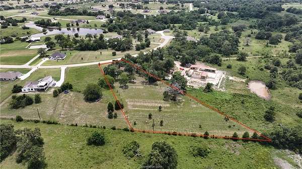 From Bryan - College Station, take Hwy 30 east, turn left on County Road 175. Continue on CR 175 until you reach the main entrance of King Oaks. Continue straight on King Oaks Drive to the end at the T. Turn right on Lancaster, right on St. John. St. John continues straight onto Scarborough (past the nature preserve). Continue straight on Scarborough, left on Henley Cove. Lot is on the right. Apple Maps address is 10256 Henley Cove, Iola