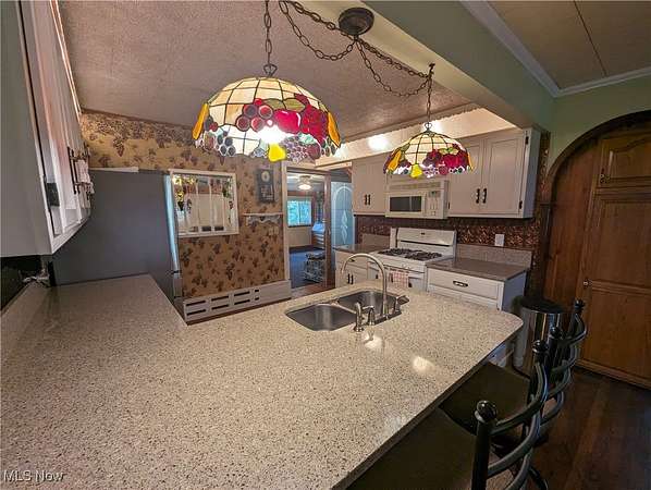 An amazing opportunity to own ALOT of house!!! This fabulous home has been the center of family gatherings for years! Several possibilities await the new owners! The spacious entry foyer greets you and is equipped with nice closet space. The generously sized eat-in kitchen boasts quartz counter tops, hardwood floor, and ample counter / storage space! The Great Room / Family Room rest towards the back of the home and offers picturesque views of the private back yard! A gas fireplace adds to the warmth and charm that this room has to offer with access to the covered patio space. Two bedrooms are offered on the main level with the option to turn the larger bedroom back into a nice sized living room - both with hardwood floors. The added convenience of a full bath on the main level is always a bonus! The upstairs offers an additional opportunity with either three bedrooms with a full bath OR an efficiency apartment with two bedrooms, living room, full sized kitchen, and a separate entrance with a covered balcony - your choice! Easy access to a very large attic through a walk in door with excessive storage space. A 23' x 22' rec room is located on the back side of the attached 3 car garage with it's own full bath, heat, washer/dryer hookup, and access to the covered back patio! Boiler and Hot Water Tank approx. 5 years old! This well kept home rest on 1.76 acres and awaits your personal touches! Make it your own!