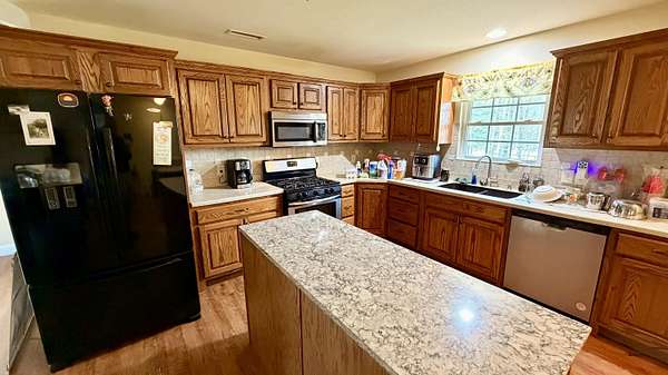 - Dishwasher, Free-Standing Gas Range, Microwave, Refrigerator