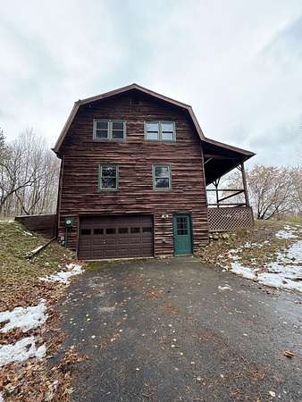 Enjoy year round living in this private, quiet, 2-story, 3 bedroom, 2 full bath, log style home. home is located on 12.62 acres of land with 525 ft. of waterfront on the Salmon River. Perfect location to enjoy the North Country's wildlife and fishing. On the first floor you will find spacious living room with woodstove, kitchen (appliances included) dining room and full bath. Second floor has 3 bedrooms and full bath. Home has a covered porch, one car garage, paved driveway, metal roof, Thermopane windows, and 200 amp service. Also located on property is a chain link dog kennel and underground fence. Private septic and public water.