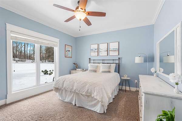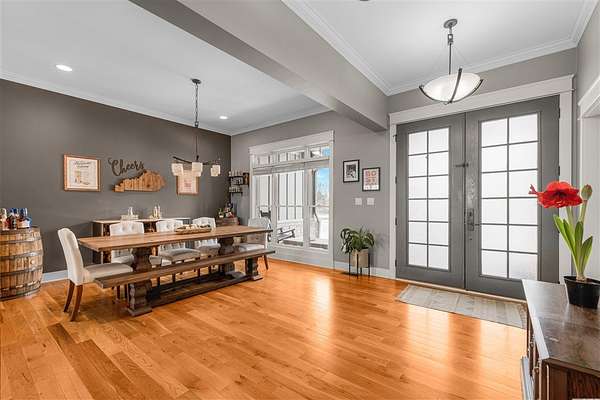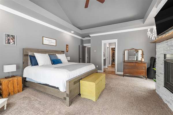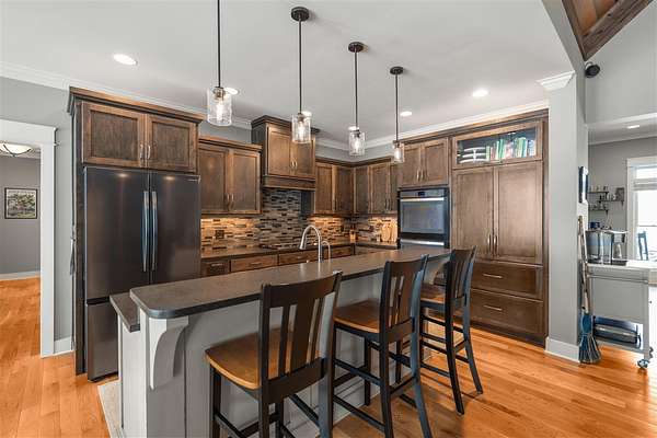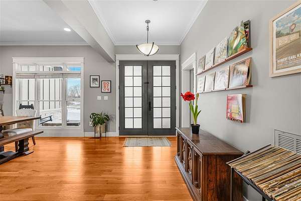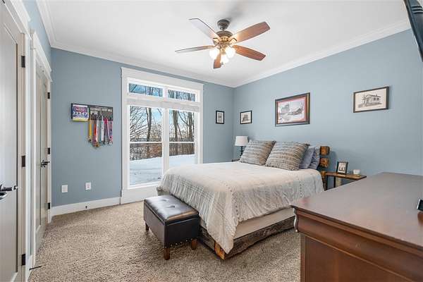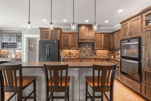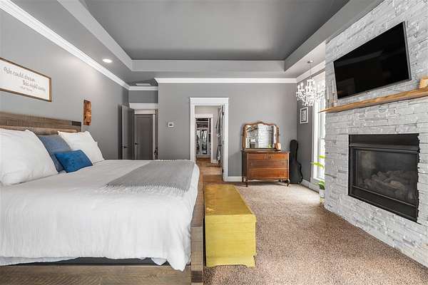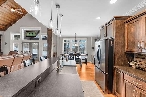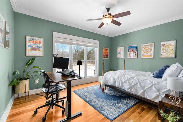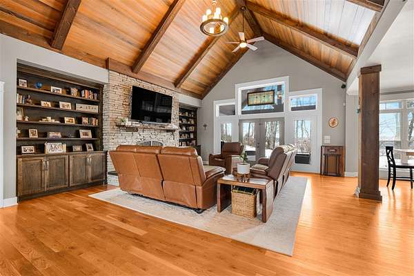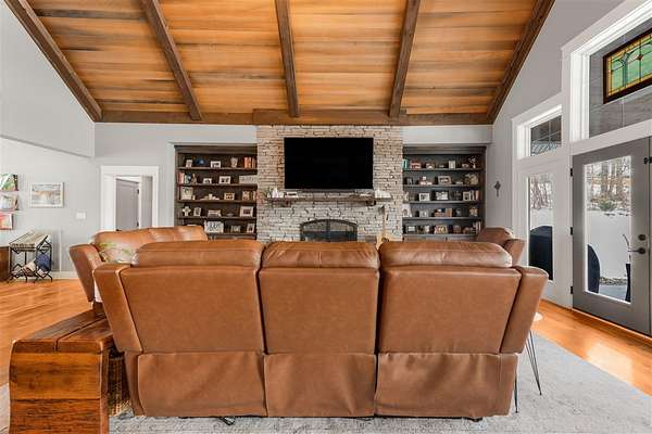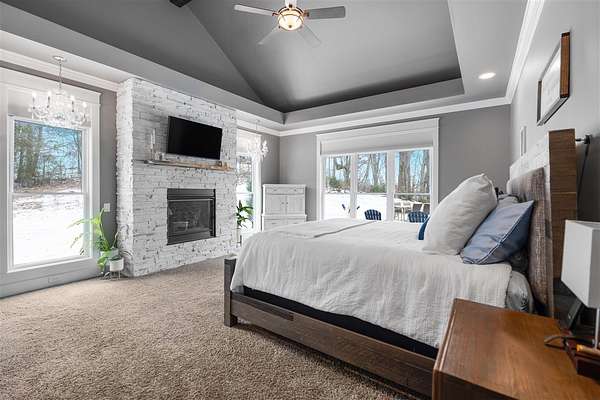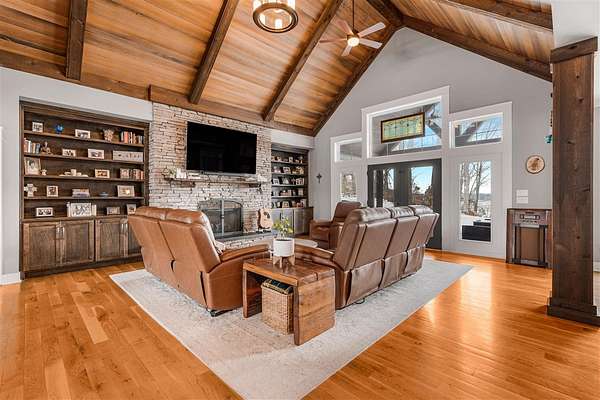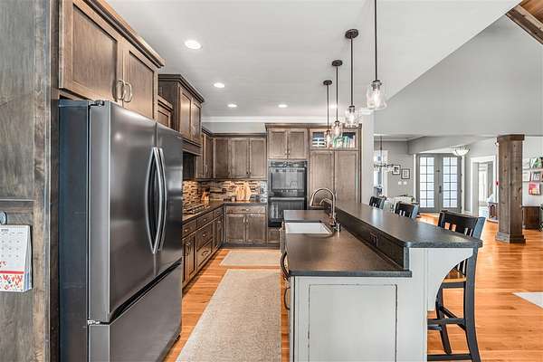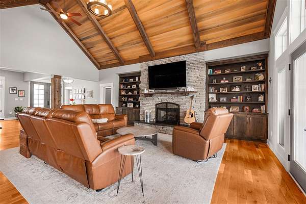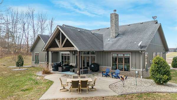 Experience refined country living in this beautifully designed 4-bedroom, 2.5-bath home offering the perfect blend of comfort, space, and privacy. Thoughtfully crafted with a split-bedroom layout, this residence features an open concept design ideal for both everyday living and entertaining. The spacious great room showcases hardwood flooring and abundant natural light, anchored by one of two inviting fireplaces. The kitchen is a true centerpiece, complete with granite countertops, a large island, gas range, double ovens, and ample cabinetry perfect for gatherings large or small. Retreat to the oversized primary suite offering exceptional space and comfort, while guests enjoy privacy on the opposite side of the home. Large entry doors create a welcoming first impression and enhance the home's bright, airy feel. Step outside to take in the peaceful surroundings. The expansive front yard features two acres of wildflowers, creating a picturesque approach and stunning seasonal views. In the evenings, unwind by the wood-burning fire pit overlooking the river, where privacy and scenery come together beautifully. Upstairs offers an additional 1,252 square feet already roughed in for electrical and plumbing, providing a tremendous opportunity to customize and expand. This property delivers the perfect balance of entertaining space and serene retreat, an exceptional opportunity to enjoy country living at its finest.