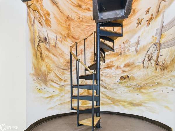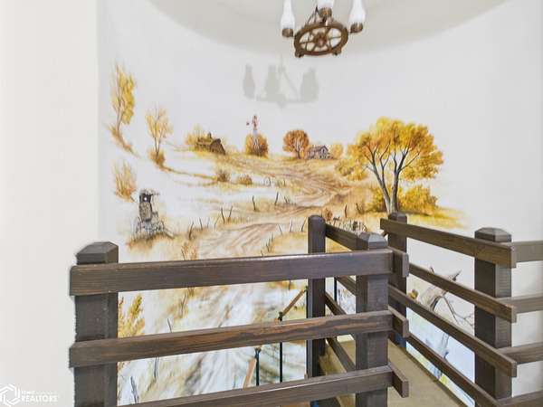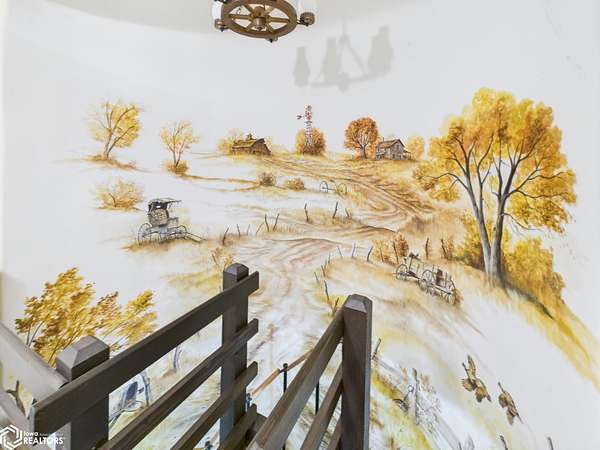 This one-of-a-kind property sits on 2 peaceful acres and offers charm, flexibility, and income potential. The main home features one-level living with laundry, formal dining, and a cozy fireplace. Enjoy your morning coffee on the back deck as the sun rises over the countryside, bringing a sense of calm and tranquility. The basement provides bonus space that can be used as a rec room, home office, or additional living area. What truly sets this property apart is the detached studio--a rare gem for artists, creators, and visionaries. This inspiring space was home to celebrated artist Larry Greenwalt. A hand-painted mural still graces the spiral staircase, and natural light fills the interior, making it ideal for painting, sculpting, photography, or even hosting workshops and exhibitions.