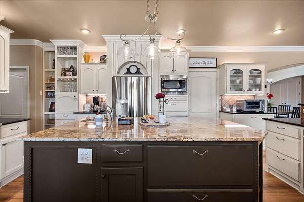 - Cooktop, Dishwasher, Disposal, Double Oven, Exhaust Fan, Gas Cooktop, Microwave, Refrigerator, Stainless Steel Appliance(s), Water Purifier