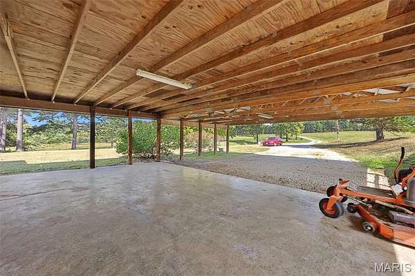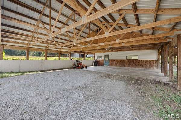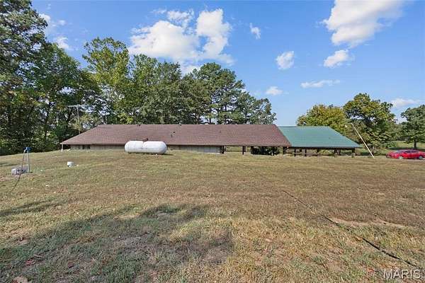 This unique 3-bedroom, 2-bath earth home in Washington County, MO, sits at the corner of State Highway 21 and Cannon Mines Rd., offering easy access with a peaceful, secluded setting. Inside, the open floor plan is perfect for entertaining or relaxing. The living room features a freestanding wood-burning stove, large windows with scenic views, and a covered front porch for morning coffee or sunset watching. A brand new roof adds peace of mind and long-term value. Outdoors, enjoy approximately 20 acres of open ground with the rest in woods, a half-acre pond, and two year-round creeks -- spring-fed Old Mines Creek and Mud Town Creek. Perfect for fishing, hunting, or simply enjoying nature. A detached shop and oversized attached carport provide ample storage. With no restrictions, you have the freedom to create your private retreat, hobby farm, or additional build sites.Wildlife is abundant, and the location is less than an hour from St. Louis, offering a quick escape to your own slice of Missouri countryside.