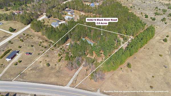 From Cheboygan proper, right on Lincoln Ave, to right on Lafayette to W Black River Rd. Home on left, driveway marked with flags.