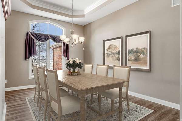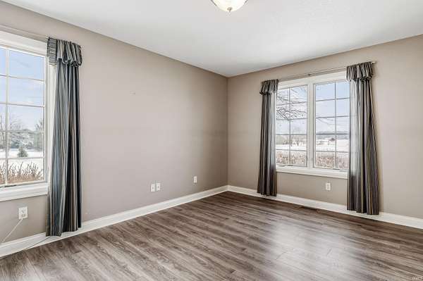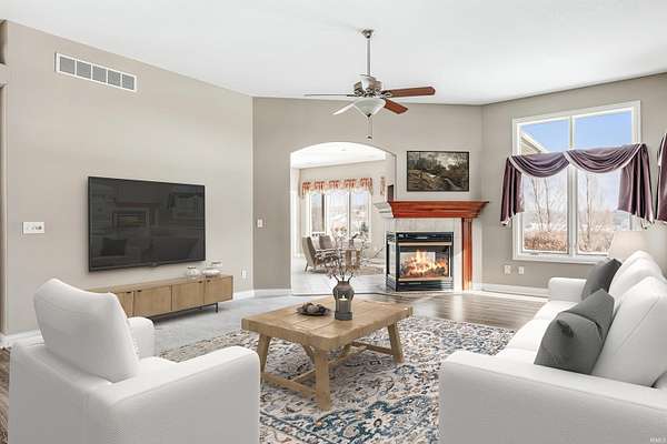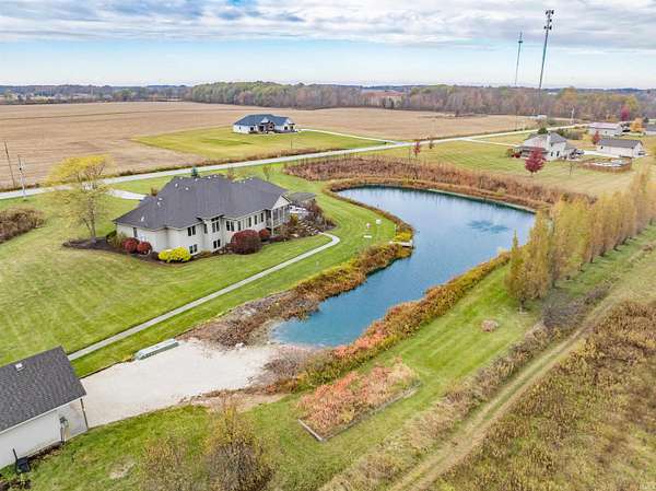 Experience custom craftsmanship and quiet country living in this Roanoke retreat, set on 3 private acres with no HOA and serene views in every direction. Built in 2006 and thoughtfully updated, the main level showcases new LVP flooring (2023), a formal dining room with a tray ceiling, a spacious family room with a two-way fireplace, and a versatile office/bedroom with French doors and a closet. The chef-inspired eat-in kitchen offers generous counter space, custom cabinetry with lighting, an island perfect for gathering, and sweeping views of the property. It opens seamlessly to a screened porch overlooking the stocked pond (bluegill, carp, bass) and fruit trees--your own outdoor oasis. Two additional main-level bedrooms include a roomy primary suite with tray ceiling, jetted tub, double vanity, skylight, and walk-in closet. The full daylight lower level is built for entertaining with a large bar, additional bedroom ideal for guests, a sizable storage area, and a dedicated workshop. Comfort and convenience continue with geothermal heating, natural gas, central vac, an all-house generator, and an outbuilding offering two additional garage spaces for vehicles, toys, and equipment. A rare opportunity to enjoy privacy, acreage, and modern amenities just minutes from downtown Roanoke and a short drive to Fort Wayne.