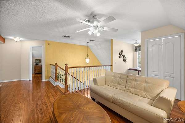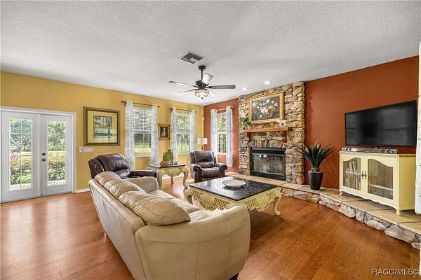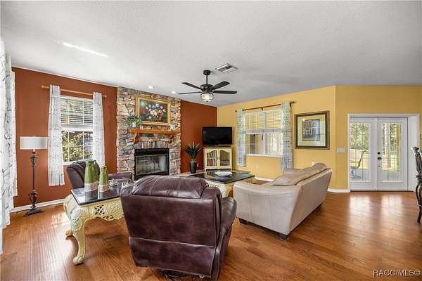 This expansive two-story ranch home has 4 bedrooms, 4 bathrooms and sits on 4.85 acres of peace and privacy, offering space, charm, and versatility at every turn. Inside, you'll find gleaming hardwood floors throughout, a cozy woodburning fireplace, and a beautiful staircase that leads to a beautiful upper level. The main-level primary suite with walk-in closet is a true retreat, featuring a sitting area perfect for quiet mornings or winding down in the evening. The second bedroom is also on the main-level while the other two bedrooms are located upstairs giving everyone lots of personal space. The oversized home office a dream for remote work or creative pursuits, featuring lots of windows allowing all of the natural Florida sunshine in. With ample room for multiple desks or a cozy seating area, it's as functional as it is inspiring. The kitchen boasts a walk-in pantry, granite countertops, wood cabinets, pot rack, and opens into the heart of the home. It's a chef's dream and great for family gatherings. Upstairs, discover a large beautiful loft with abundant storage space-making it perfect for guests, growing family or for entertaining. The outdoor space is just as impressive, with two storage sheds and a massive 30' x 80' greenhouse-ready for serious gardening, hobbies, or celebrating a special event. The possibilities are endless. The expansive acreage provides privacy, space, and potential. Whether you're drawn to natural beauty, wildlife, local culture, or outdoor adventure, this home in Crystal River offers an ideal base to dive into everything this special region has to offer. Don't miss this rare opportunity- experience county living paired with nature's best, only minutes from downtown Crystal River, the gulf, famous springs, trails, and tranquil waterways. Conveniently located about 1-1/2 hours from Tampa and Orlando, and under an hour from Ocala making it easy for you to go see your loved ones or have your loved ones come see you. Schedule your private tour today!