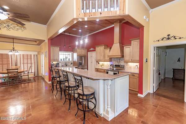 - 9+ ft Ceiling, Attic Access, Crown Molding, Electric Dryer Con, Electric Stove Con, Electric Washer Con, Granite Counters, High Ceilings, Kitchen Island, Primary Bath, Separate Shower, Walk-In Closet(s)