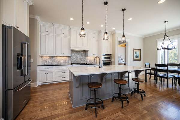 - Built-In Electric Oven, Cooktop, Dishwasher, Disposal, Microwave, Refrigerator, Stainless Steel Appliance(s)
