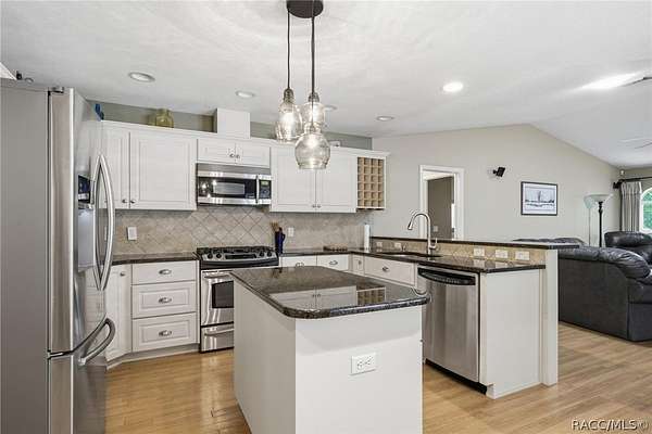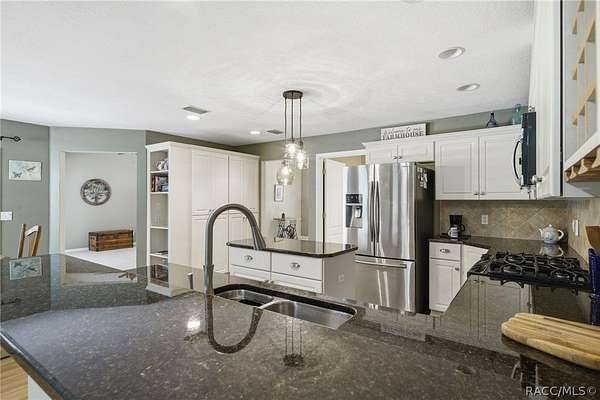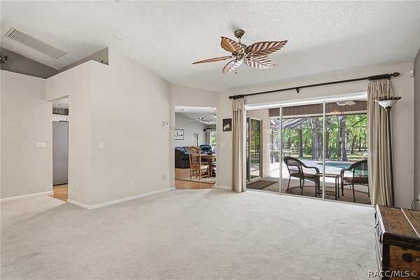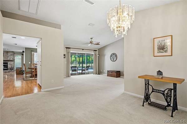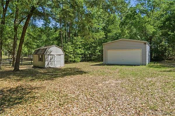 Welcome to this charming 3-bedroom, 2-bath country retreat nestled on nearly 5 acres in the heart of Inverness. This concrete block/stucco home offers over 2,100 sq ft of living space with a warm, welcoming layout and classic Florida character throughout. A curved paver walkway leads to a gracious front entry, opening into bright and spacious living and dining areas filled with natural light. The kitchen features cabinetry, granite countertops, stainless steel appliances, and a center island, flowing naturally into a family room with a fireplace. The primary suite has pool access and a lovely en suite bath. Additional bedrooms are nicely sized. An inside laundry area along with an attached 2-car garage. Step outside and enjoy a screened lanai and sparkling in-ground pool surrounded by a paver deck, all set against beautiful wooded and open pasture views. The property also offers a detached garage/workshop with electric, a utility shed, and a fully fenced in yard with no HOA restrictions holding you back.