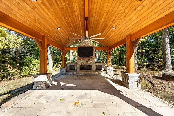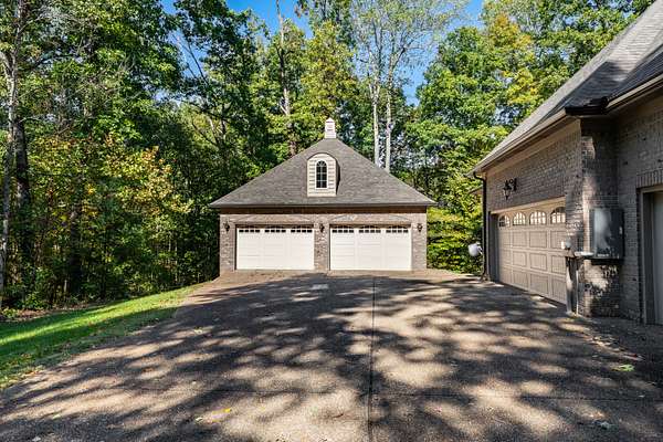 Beautiful custom-built home nestled at the end of a private drive with wooded acreage and a view of the hole #5 green on Oak Hills Golf Course! Property is within 30 minutes of Nashville. Plenty of car storage with a 3-Car Attached Garage and a 2-Car, 30x30 Detached Garage/Shop with full storage below. The backyard is perfect for entertaining, featuring a gazebo with a wood-burning fireplace, and TV connection. Master suites on both the first floor and second floor. The primary bathroom includes a beautiful tile steam shower. Large media room with projector screen which is perfect for movie nights. Relax in the sun room with a fireplace and view of the tranquil backyard. This floor plan flows well and provides an open concept with multiple rooms that have flexibility to be utilized however you see fit. The superior craftsmanship and finishes within this gem include vaulted ceilings, hardwood and tile floors throughout the first level, shiplap and brick accent walls, and granite and quartz countertops. Enjoy the natural lighting and views throughout every room of this home. New roof and gutters replaced this year!