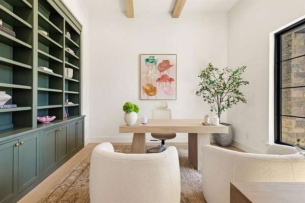 Located in the gated community of Santorini within highly sought-after Brock ISD, this impeccably designed estate showcases refined luxury and exceptional craftsmanship. The residence features 4 bedrooms, each with a private en-suite bath and walk-in closet, delivering outstanding comfort and privacy for family and guests. A dedicated office with custom glass and iron doors provides an impressive workspace, while a bonus room with direct porch access adds flexibility for media, wellness, or entertaining.