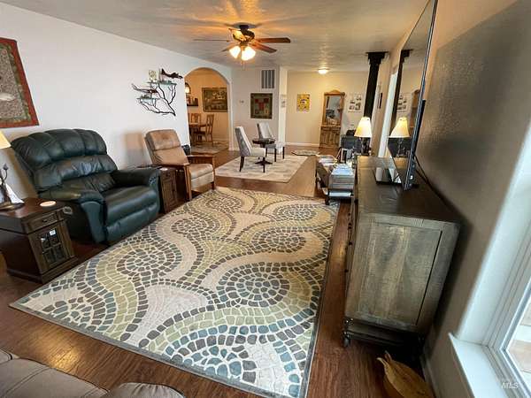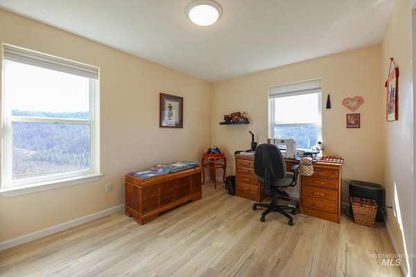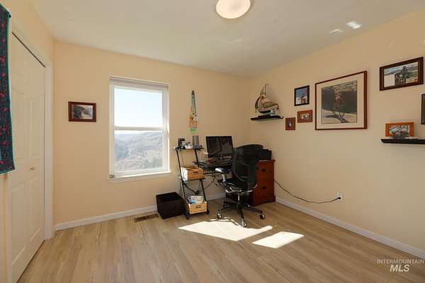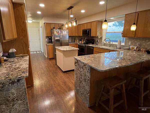 Make an appointment to come and view this beautiful property today! This residence has been meticulously remodeled, blending contemporary finishes with timeless comfort. At its heart, a spacious kitchen with plenty of storage and soft close hinges on the drawers and cabinets along with the main-floor primary suite provide effortless single-level living. The inviting living room, anchored by a cozy freestanding woodstove, serves as the perfect gallery for the panoramic canyon views framed through the windows. Or move out onto the covered deck and feel the breeze on your face as you enjoy the view. 5 bedrooms total, two in the basement are none-conforming. Attached 2 car garage offers you convenient parking and room for storage and the shop offers more space for more storage and projects. Above the house is a barn/machine shed for more parking, storage or animals. Additional acreage available.