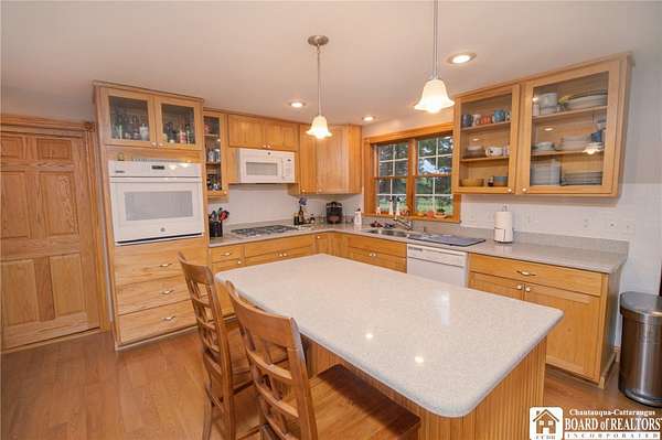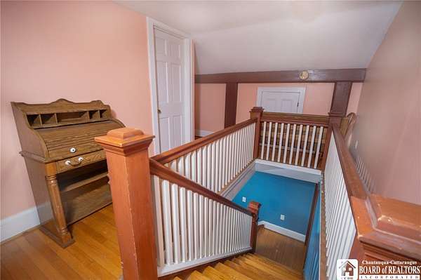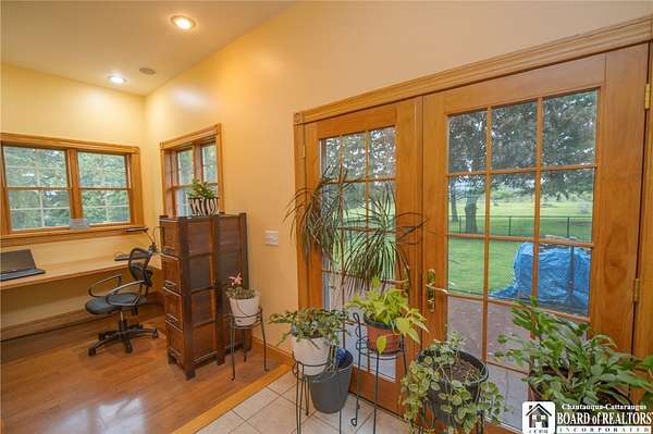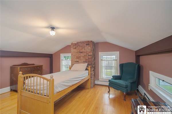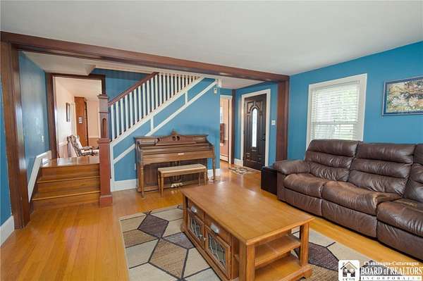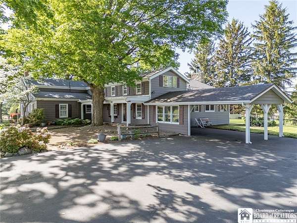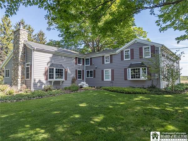Welcome to (known to the locals) the "Christy House," 4BR/2.5 Bath situated on 2 acres, a beautifully preserved colonial home with rich history and timeless charm, originally part of the old Christy Farm. This inviting residence showcases classic features such as gleaming hardwood floors on first and second floors, elegant pocket doors, and exposed beams. A thoughtfully designed addition with a woodburning stone fireplace, features radiant floor heating, soaring 9.5-foot ceilings, and serves as a spacious gathering room with a private home office-perfect for remote work or quiet study. This space connects seamlessly to the updated kitchen, which boasts custom hickory cabinetry, solid surface countertops, and a large center island. Adjacent to the kitchen is a convenient laundry area and walk-in pantry with 90 square feet, adding both function and style. A well-placed half bath near the rear entrance enhances daily convenience. The main floor also includes a formal dining room, large parlor, plus, living room with brick wood-burning fireplace, and a first-floor bedroom with full bath-ideal for guests or multi-generational living. Upstairs, you'll find a serene primary suite complete with a luxurious bathroom featuring a jetted tub and separate shower. Two additional bedrooms, a versatile loft area, and abundant storage-including a step-up attic-offer ample space for family and guests. Dual staircases, front and back, add to the home's unique character and accessibility. Outside, enjoy the beauty of professionally landscaped grounds, multiple patios, and a brand-new blacktop driveway leading to a three-car detached garage. Additional features include a six-zone hot water baseboard heating system and a 200-amp electric service, plus an amazing stone foundation with a poured concrete floor! This one-of-a-kind property offers a rare blend of historic charm, modern updates, and versatile living spaces-truly a place to call home. *seller provided sq ft at 3404 (discrepancy from public records) Fredonia Schools, Town of Sheridan, no village tax!