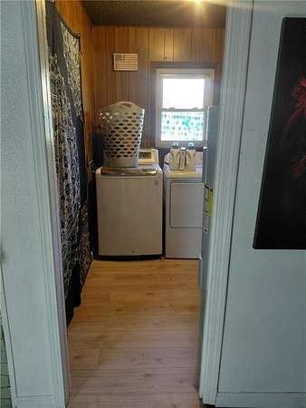 3 bedroom, 1 bath home on 2.5 acres. Enjoy a private walking trail and firepit in the woods behind the house. Features a dedicated laundry area with washer and dryer that convey. The large yard includes a storage building and ample space for outdoor activities. Bonus: John Deere riding lawn mower conveys. Open concept kitchen, dining, and living area. Refrigerator included. Roof installed in 2020, HVAC in 2021, water heater in 2019, and the septic system was new in 2019 and pumped in December 2024. Grill and trampoline to convey as well.