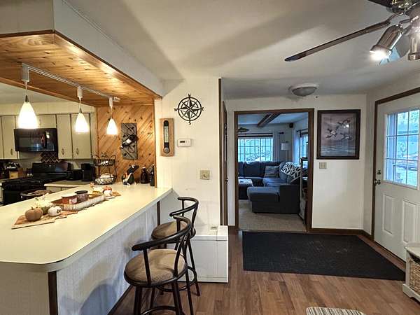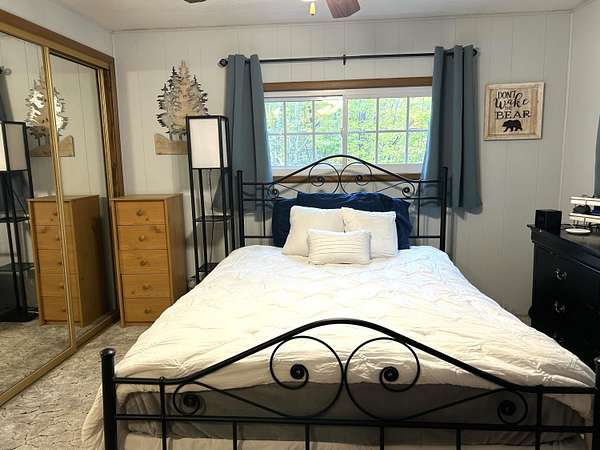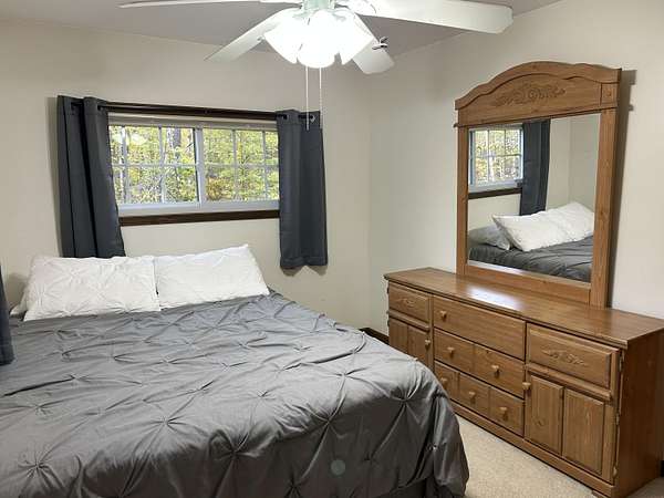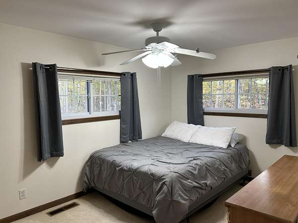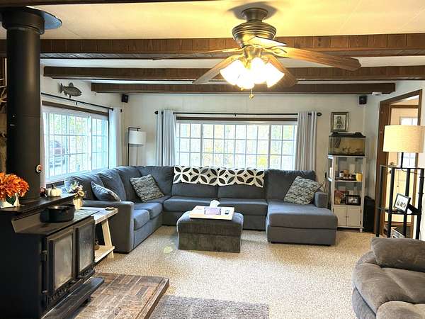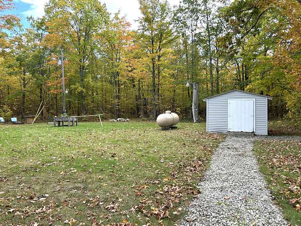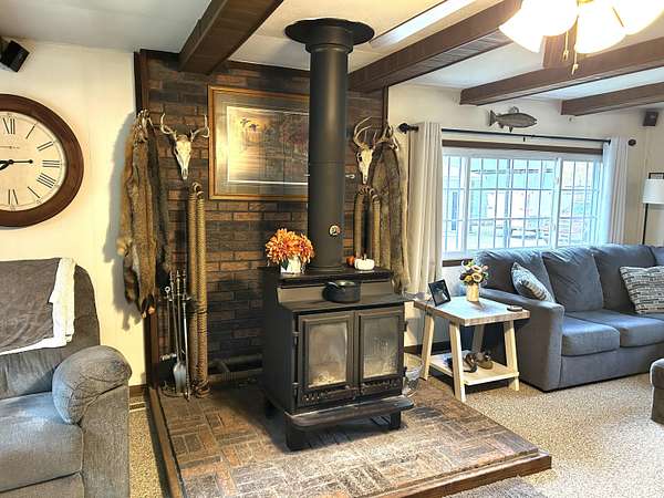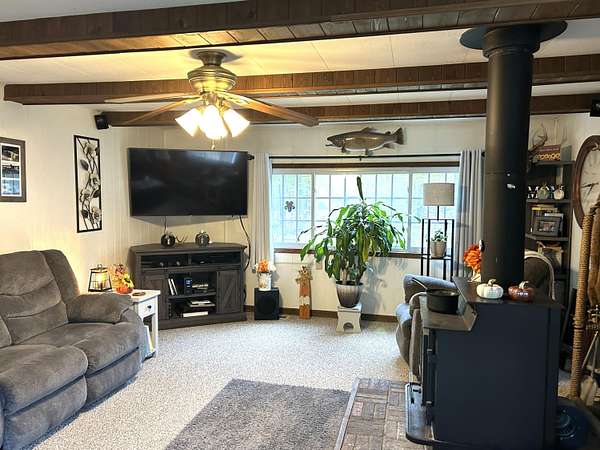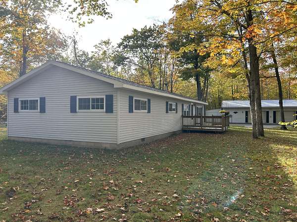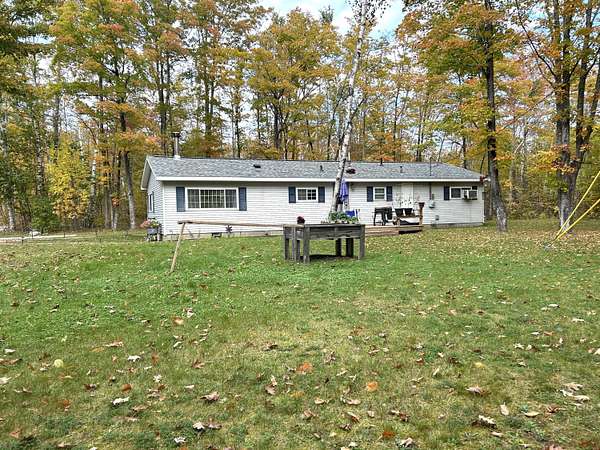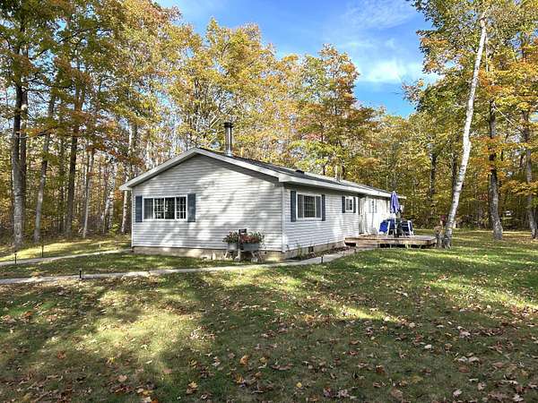 Discover the comfort and convenience of this charming ranch-style home situated on over 1.5 acres. The home features a spacious main bedroom with a private bath, a cozy wood stove for those chilly evenings, and several recent updates including a newer furnace, water heater, roof, and kitchen appliances. Outside, you'll find a 30x42 detached garage equipped with a 100-amp sub panel and a handy half bathroom, plus a 10x30 lean-to for extra storage. The yard has extra lights for evening horseshoe games and outside activities. Never leaving you in the dark. Offering both practicality and privacy, this property is perfect for those seeking a peaceful setting with plenty of room to spread out. A lot in the Presque Isle Association is included giving you clubhouse access and other amenities.