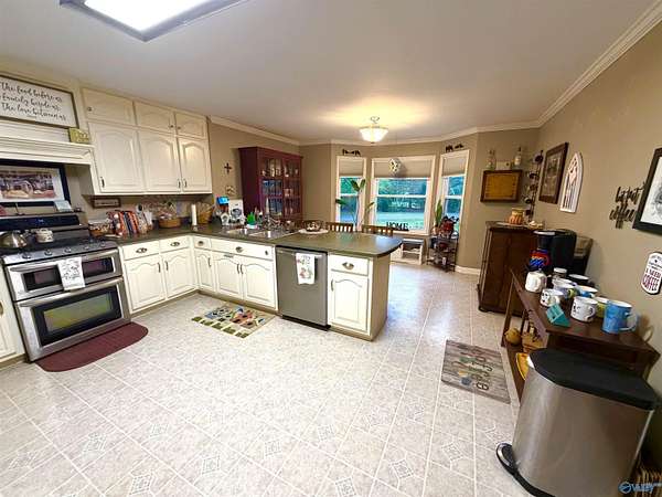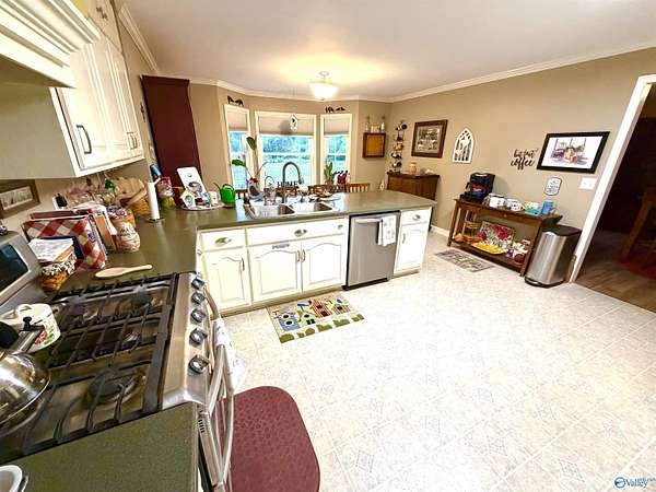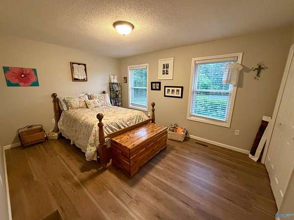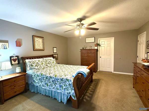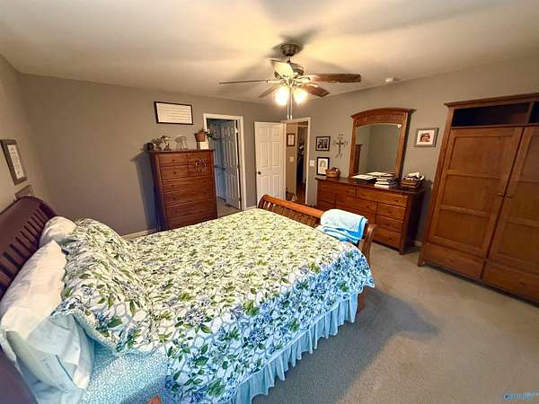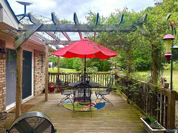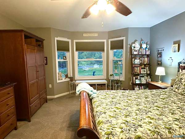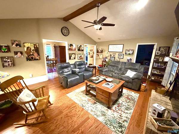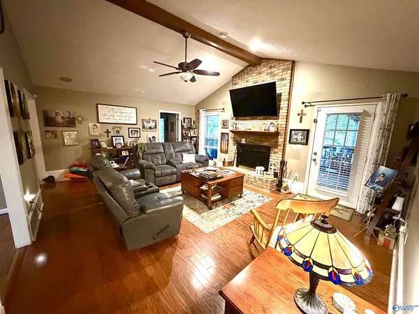 Welcome to this beautifully maintained home nestled on nearly 4 acres of serene, picturesque land. The spacious living room features an impressive 11-foot vaulted ceiling, creating an open/airy feel that's perfect for both relaxing and entertaining. Step outside to your private retreat-a massive 15x37 back deck, partially covered for year-round enjoyment. Enjoy your morning coffee, surrounded by the sounds of nature and gorgeous landscaping. Additional highlights include energy-efficient solar panels, offering long-term savings and sustainability, as well as a luxurious bathroom w/bidet toilet for added comfort. Only 25 minutes to Huntsvile & 15 to Guntersville Lake! If you're looking
