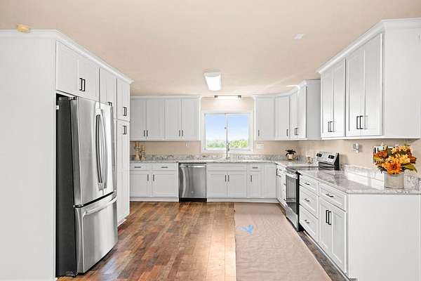 Upstairs, you'll find a generously sized bonus/flex room, perfect for a home office, media room, or play area. Brand-new flooring flows throughout the home, adding a fresh, modern touch. Relax year-round in the large heated and cooled sunroom overlooking the private acreage. All offers Reviewed by Sellers.