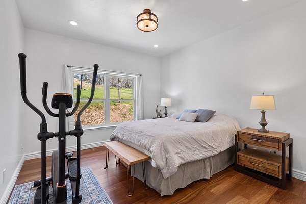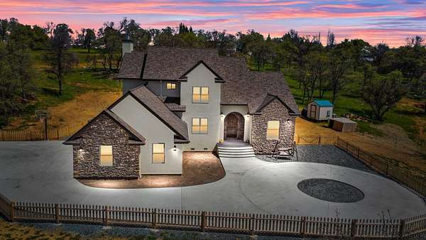 Spectacular views of the foothills with Luxury Living in this exceptional property. Modern ranch estate on 5 fully fenced acres just outside historic Angels Camp. Built in 2022, this high-efficiency home blends contemporary design, sustainability, and total independence--with solar power, battery storage, generator backup and a private well providing seamless comfort. Step inside to an open-concept great room framed by panoramic country views, vaulted ceilings, and premium finishes throughout. The chef's kitchen features custom cabinetry, quartzite counters, and top-tier appliances. The 4 spacious bedrooms and 3.5 baths include a resort-style primary suite with a spa-inspired bath and large closet. Enjoy the outdoors year-round, level pad for shop or ADU, usable landscape, and ample space for RVs, animals, or future additions. Every inch of this home was designed for self-reliance, elegance, and peace of mind.