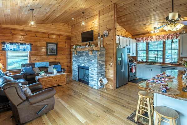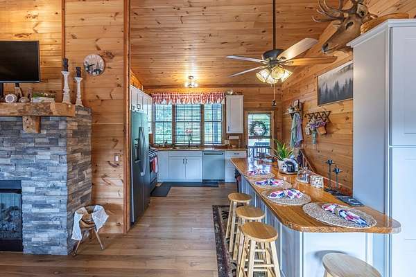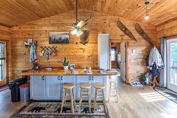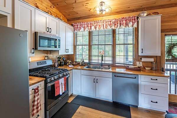 If you are looking for a dream mountain cabin home with million dollar long-range mountain views, look no further. This home features a covered front porch and multiple decks with long-range mountain views. The main level of the home features beautiful hardwood flooring, tongue and groove walls, and a rock fireplace with gas logs. There are many updates and upgrades including new kitchen cabinets and appliances, new interior doors, bathroom upgrades, a heat pump installed in 2023, and a radon mitigation system. The walk-out basement is finished and has newer luxury vinyl plank flooring and fresh paint and trim. Fiber optic internet is available and currently installed. There is a well-built detached garage and an outbuilding. The property is very private and has beautiful mature trees. This is truly a one of a kind mountain cabin with many potential uses that is located only minutes from Grayson Highlands State Park, Jefferson National Forest, stocked trout streams, the New River, and the many recreational opportunities that Grayson County has to offer.