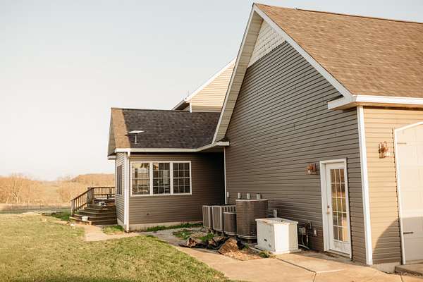 Set on 41 beautiful acres, this well-maintained home offers the perfect blend of privacy, space, and functionality. With a classic farmhouse-inspired exterior and inviting front porch, the property provides a warm welcome and a peaceful setting surrounded by open land and scenic views.Inside, the home features a spacious and practical layout designed for comfortable everyday living and entertaining. It includes 7 bedrooms and 5 1/2 baths, 9' ceilings throughout the house, hardwood floors, carpet in the bedrooms, granite countertops, stainless steel appliances, large laundry room, ample storage, formal dining room and breakfast nook. Master suite is located on main floor complete with two-person jetted tub and walk in shower. 4 bedrooms located on 2nd floor with jack & jill designs, along with walk in closets. An additional bedroom/bonus room is above kitchen separately from other upper bedrooms and also includes private bathroom. The basement has radiant heat concrete floors, large living space, kitchen cabinets/counters, media room, bedroom, and bathroom, as well as 9' ceilings. A 12'x16' outbuilding with radiant heat floors located on property with approximately 3/4 of an acre fenced. The generous acreage creates endless possibilities for recreation, hobby farming, livestock, gardens, or future expansion. Whether you are looking for a quiet country retreat, a working homestead, or a private estate, this property delivers exceptional versatility and room to grow.Enjoy the tranquility of rural living with plenty of open space, fresh air, large pond, wet weather creek, and the freedom to make the land your own. A rare opportunity to own a substantial tract with a beautiful home in a serene setting.