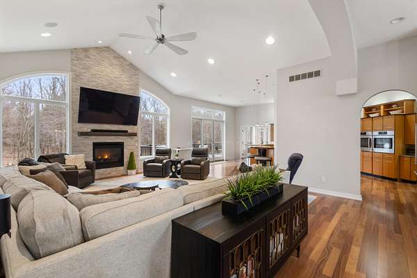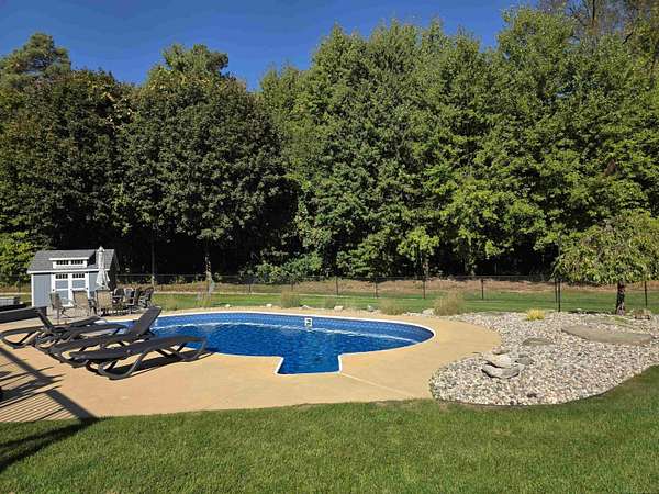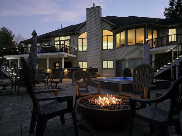 An exceptional opportunity to own a luxury estate in the exclusive Skyview Estates aviation community, including ownership in community-owned Newman's Airport (4N0). Situated on a private 3-acre parcel in Kalamazoo, this meticulously updated ranch-style home showcases over $450,000 in premium improvements completed within the past five years. Thoughtfully designed with an open-concept layout inspired by Feng Shui principles, the home features designer finishes, premium flooring, and a chef's kitchen equipped with high-end appliances, creating an ideal setting for both everyday living and entertaining. The main-floor primary suite serves as a private retreat with a spa-inspired en-suite bathroom featuring dual vanities, separate water closets, walk-in closets, and tranquil views of the surrounding landscape. The lower walk out level offers additional flexible living space, including a spacious flex room and a secondary primary suite with a private en-suite bath and heated floors. Two additional rooms share a third full bathroom, and a private mother-in-law suite with kitchenette provides ideal accommodations for guests or extended family. Outdoor living is elevated to resort-style luxury with a stunning pool and integrated hot tub, covered lounge area beneath a waterproof deck, and a natural gas firepit perfect for evenings under the stars. The custom outdoor kitchen is designed for entertaining and features a natural gas grill and burner, refrigerator/freezer, granite countertops, and generous seating areas. A massive 50' x 60' airplane hangar offers incredible versatility and is perfect for aviation enthusiasts, collectors, or hobbyists. Skyview Estates is an intimate private aviation community featuring just 13 custom homes centered around a 125' x 2,697' grass runway. Located on Kalamazoo's desirable west side, the property offers convenient access to shopping, US-131, nearby golf courses, and outdoor recreation. Situated within the highly regarded Mattawan School District and just 35 minutes from the beautiful shores of Lake Michigan, this property offers a rare blend of luxury living, privacy, and aviation lifestyle.