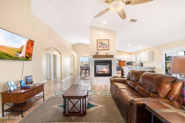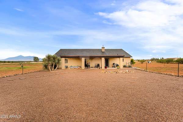 Bring your family home to open skies, majestic mountain views, and plenty of room to grow! This spacious 3-bed, 2-bath retreat offers a large open-concept living area, perfect for movie nights by the cozy gas fireplace. The split floorplan puts the oversized master suite-with soaking tub and walk-in closet-on one side for true privacy, while two more bedrooms and a full bath welcome kids or guests. Step outside to endless night skies, a covered patio for summer BBQs, and lots of space for play or stargazing. Tucked on a dead-end road, you'll enjoy quiet, safety and peace of mind. Bring your RV-there's a dedicated hookup, plus a roomy shed for tools and toys. Make memories in a home designed for comfort and convenience, surrounded by nature's beauty. This home delivers it all!