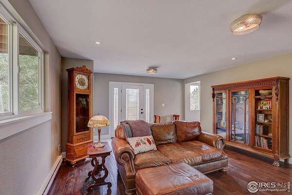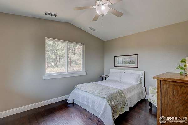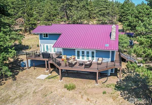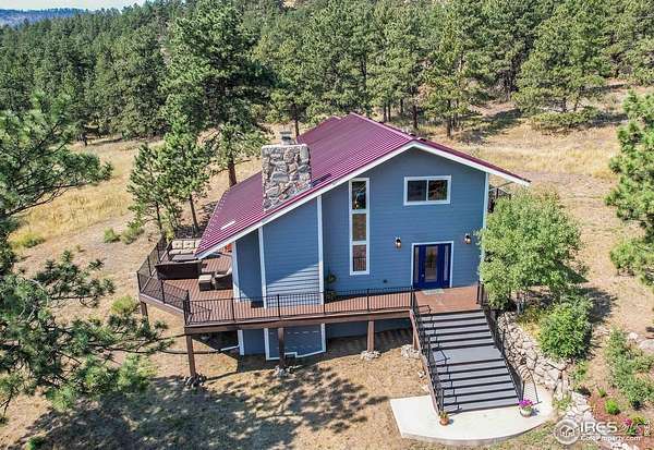 First time on the market in over 35 years!This beautifully remodeled 2-story home sits on 75 breathtaking acres that can be divided into two parcels. Bordering Roosevelt National Forest and the Sylvan Dale Guest Ranch Conservation Easement Land, the property offers unmatched privacy, panoramic views, and direct access to endless trails.Inside, you'll find light-filled living spaces, 3 bedrooms, and 4 bathrooms. The stunning kitchen flows into a dining room surrounded by windows that frame incredible views. Both the dining and living rooms open onto a spacious wraparound deck-perfect for entertaining, stargazing, or simply soaking in the peace and quiet.Upstairs, the primary suite feels like a retreat with a spa-like bathroom, walk-in closet with stackable washer and dryer, and a private balcony ideal for morning coffee. The main and upper levels feature wood flooring, and all three bathrooms have been tastefully remodeled.The walkout basement is ready to be finished with your personal design touches and already includes a second laundry room and a 4th bathroom awaiting updates. Additional highlights include a detached 2-car garage, efficient heating and cooling with a heat pump, a newer metal roof, durable James Hardie cement siding, and a seasonal stream running through the property. There's also plenty of space for horses and outdoor recreation.Located just 20 minutes from Loveland and everyday conveniences, this property offers jaw-dropping 360 views of Devil's Backbone, Boedecker Lake, Boyd Lake, and the surrounding mountains. A rare opportunity for unparalleled mountain living-privacy, beauty, and adventure all in one.Slow down when you drive up so you don't miss the Wild Turkeys, Deer, Elk...it seems like there's always some wildlife wandering through this peaceful area.