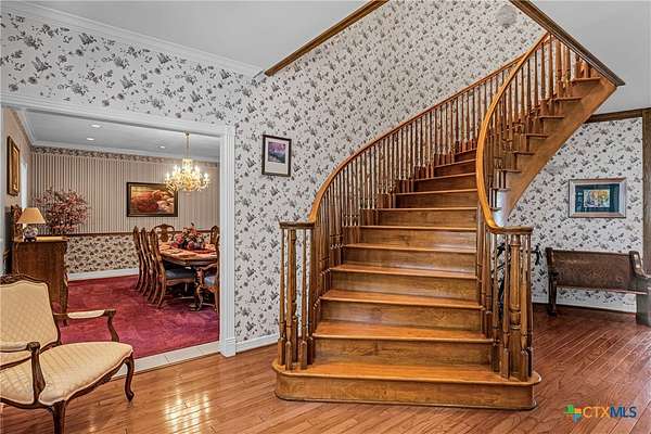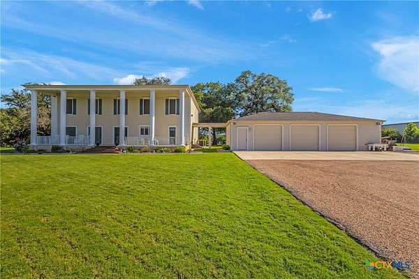 Welcome to Savanah, a breathtaking Georgian estate nestled on nearly 15 private acres in the heart of Belton. This timeless property is more than just a home; it's an experience. As you approach down the long private drive, you're greeted by towering trees, expansive skies, and the quiet peace only wide-open Texas land can offer. The moment you step onto the wraparound porch, you'll feel it: a sense of serenity, strength, and Southern charm. Inside, the home exudes elegance, featuring classic white columns, rich wood floors, soaring ceilings, and natural light that pours into every space. A grand staircase greets you in the foyer, while multiple living areas offer comfort and flexibility. Whether you're hosting holiday gatherings, enjoying coffee at sunrise, or working from home with the most inspiring views, Savanah offers space to breathe, grow, and thrive. The kitchen is warm and inviting with modern updates, ample storage, and a layout that brings everyone together. The primary suite is your personal sanctuary, complete with tranquil views of the property and a soaking tub to melt the day away. Step outside and be enveloped by nature: deer at dusk, the rustle of oak leaves in the breeze, and the occasional visit from wild turkeys. The land is wildlife exempt, with fencing already in place, giving you freedom to enjoy or expand. Whether you're dreaming of a small hobby farm, a peaceful homestead, or simply more space to live intentionally, this is the rare opportunity to own land, lifestyle, and legacy, all in one. Minutes to Stillhouse Lake and Belton ISD. No HOA, low taxes, and unmatched charm. *Must provide pre-approval letter. Schools listed are to be verified by buyers for accuracy.*