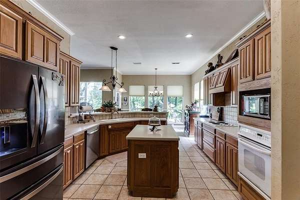 From the moment you arrive, the lush surroundings and peaceful pond set the tone for a lifestyle rooted in relaxation and natural beauty. Inside, you'll find spacious living areas designed for gathering, entertaining, and making memories. Multiple living and dining spaces flow effortlessly, offering room for everyone to spread out--or come together.