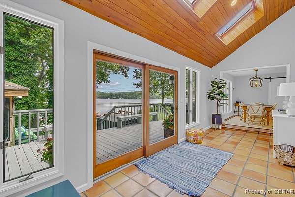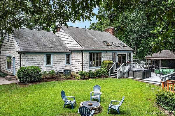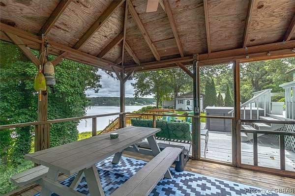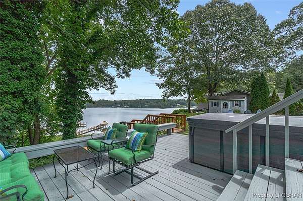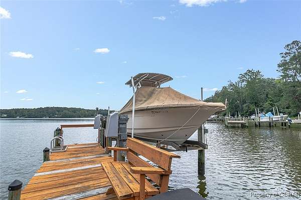 Welcome to this ideal waterfront home location at Corrotoman by the Bay. Home offers 1.3+- acres of privacy with awesome water views, home being sold almost fully furnished and all the amenities that make it a very special property. Amenities include entrance foyer, living room/fireplace, waterside creek room spacious dining room overlooking the water plus great chef's kitchen. primary bedroom with private bath, two guests bedrooms, two baths, mud/ laundry room and downstairs basement room, with 8' ceilings ideal for kids play room, media room or workshop & two car oversized garage,additional storage. Backyard, overlooking river, and dock,is the perfect place to spend your outside time. Includes a 2 tiered deck with bench seating, 7 person hot tub, firepit area and incredible screened porch with music speakers, picnic table and seating which makes perfect spot for hanging out and eating the crabs and oysters. Other features include sailboat depth water at dock with boat lift. Dock has been well maintained and lift has been regularly serviced. Another BIG highlight of living is this very special location is that you just walk across the street to the community area that includes pool, (A new pool scheduled to be built Sept. 2025), tennis and pickle ball courts, club house, picnic shelter, playgrounds, basketball & shuffle board plus field area for other outdoor sports. This area is perfect for kids & grandkids summer fun plus a community dock and boat ramp. A visit and tour of this property is a must to see how Special it is. Call Today for your tour.