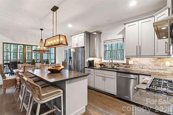 Welcome to 103 Big Game Drive, nestled in the highly sought-after Old Wildlife Club at Lake James. This 4-bedroom, 3-bath home may look modest from the outside, but it truly lives big, offering a thoughtfully designed layout that maximizes space, comfort, and functionality. The home features two spacious living rooms and two fireplaces, creating inviting spaces for relaxing or entertaining on multiple levels. The downstairs living area is ideal as a game room or secondary entertaining space, complete with a sink, mini fridge, and granite-topped cabinetry-perfect for hosting guests or cozy movie nights. Step outside to enjoy the large covered back porch, an ideal spot for morning coffee, evening gatherings, or simply taking in the peaceful surroundings. Ownership includes access to the exceptional Camp Lake James amenities, featuring pickleball and tennis courts, a resort-style pool, hot tub, fitness facility, and on-site restaurant, all just minutes away. Best of all, a deeded boat slip is included, offering effortless access to Lake James for boating, swimming, and lakeside adventures. Whether you're seeking a full-time residence or a mountain retreat, this home delivers the perfect blend of comfort, versatility, and Lake James lifestyle in one of the area's premier communities.