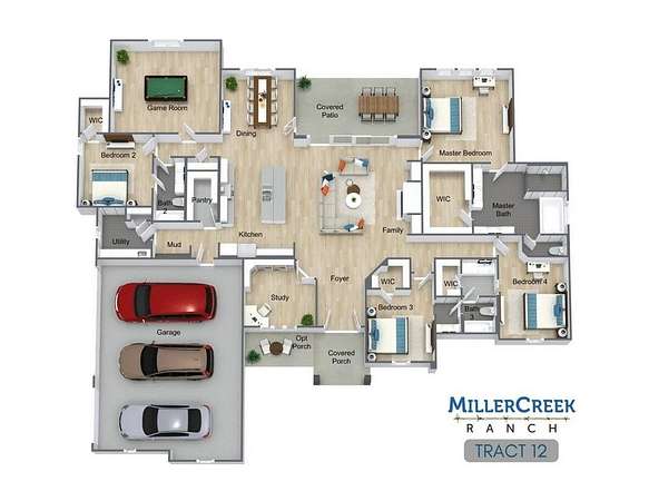 - Bathroom x 3, Bedroom x 4, Family Room, Game Room