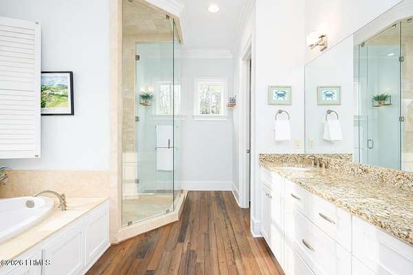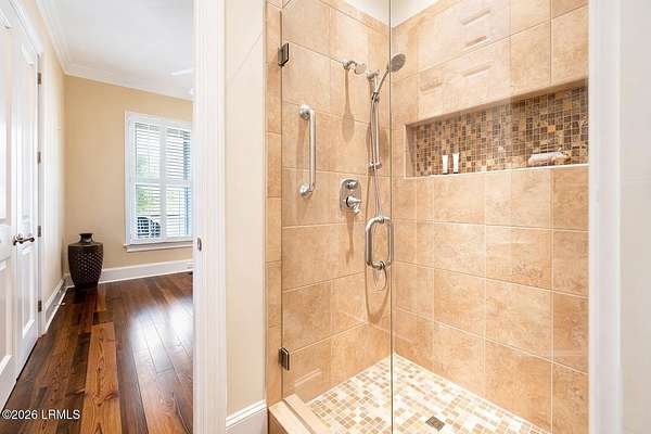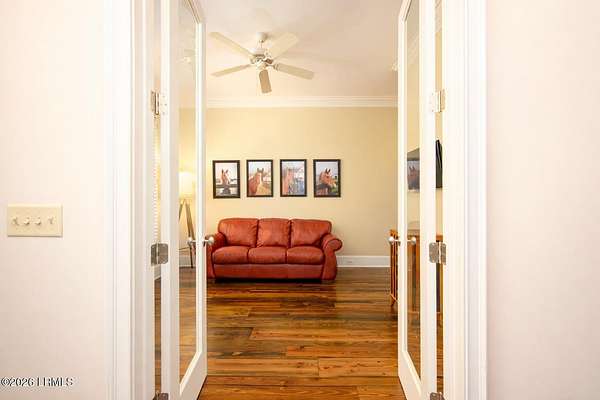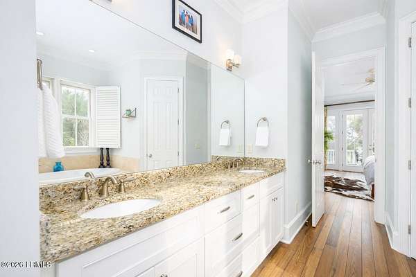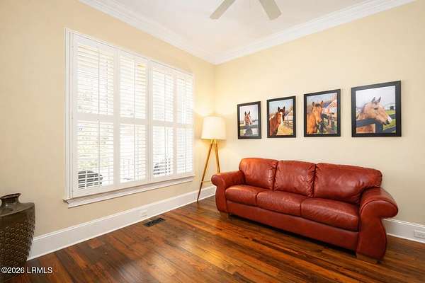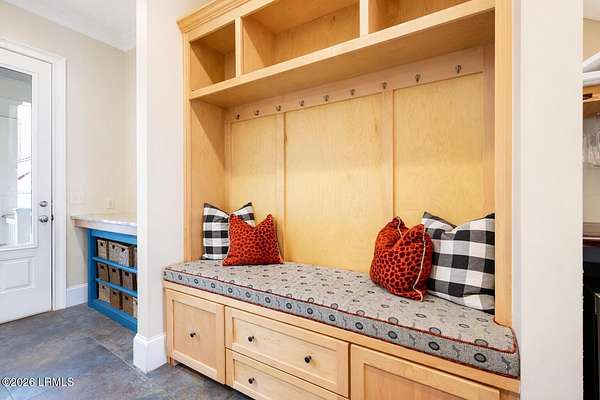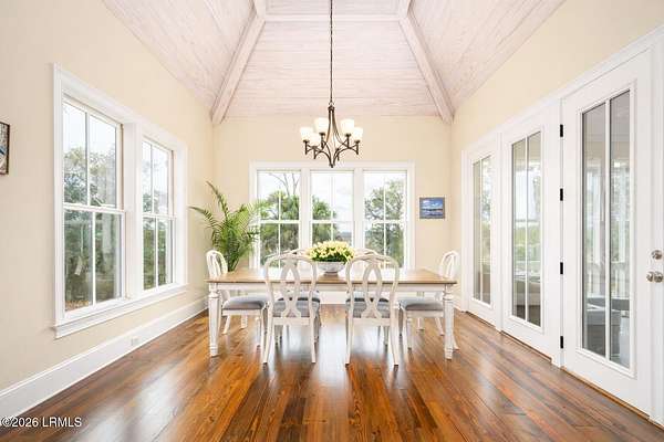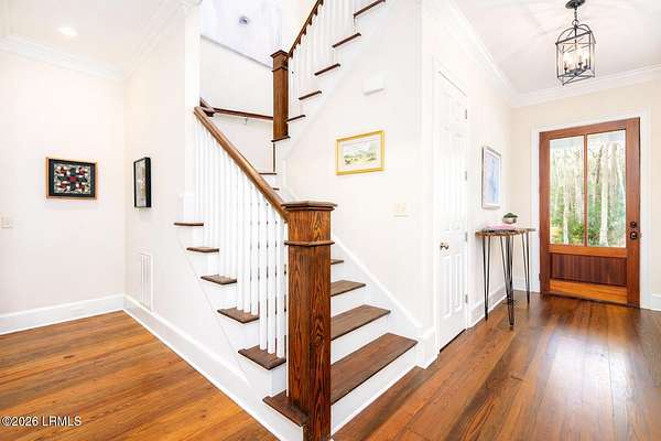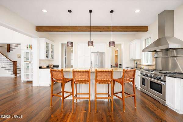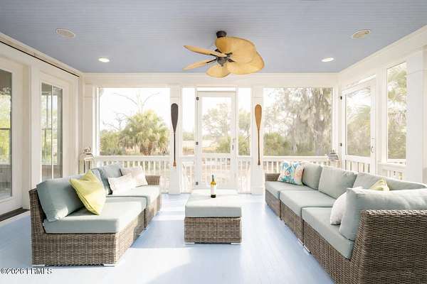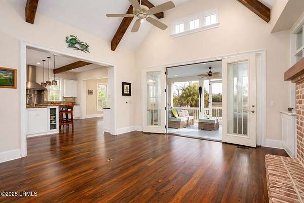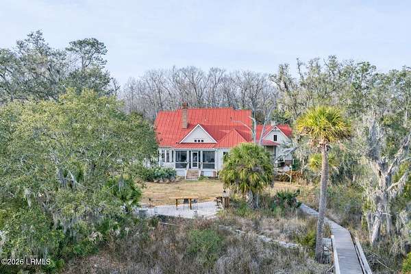 There are homes....and then there are places that change the pace of your life. Set on 4.26 private acres along the quiet, winding banks of the Huspah Creek, this extraordinary waterfront estate is where mornings begin with golden sunrises over the marsh and end with salt-kissed breezes drifting in from the water. Custom built by renowned Lowcounty builder Allen Patterson,the home reflects both heritage and heart. Reclaimed beams from a historic South Carolina Cotton Mill stretch overhead, while heart of pine flooring from Kentucky's bourbon district carries stories of generations past. Detailed crown moulding and custom built-ins add layers of warmth and refinement throughout. At the center of the home, the kitchen was designed for connection - anchored by a commercial grade Kitchen-Aid gas range and open spaces invite conversation, celebration, and lingering dinners. Escape to your master suite located on the main floor; offering privacy and convenience. The spa-inspired bath features a luxurious steam shower; creating a true retreat at the end of the day. Outdoors is where the Lowcountry comes to life. Expansive entertaining spaces overlook the creek and marsh, making it the ideal backdrop for evenings, sunset dinners, and memorable oyster roasts. A private dock complete with pier head and float invites effortless days on the water - whether boating at high tide, casting a line at sunset, or simply enjoying the rhythm of the marsh. Located within a luxury waterfront community, this property delivers privacy, prestige, and the serenity of nature - all while embracing the beauty, breezes, and boating lifestyle that define the Lowcountry. This is more than a home; it's a legacy property designed for those who dream of life on the water.
