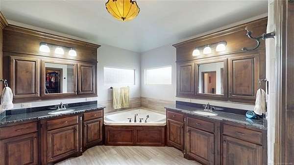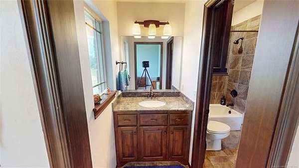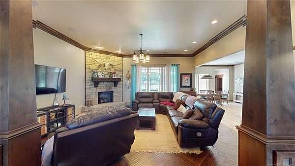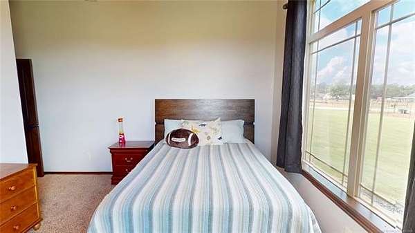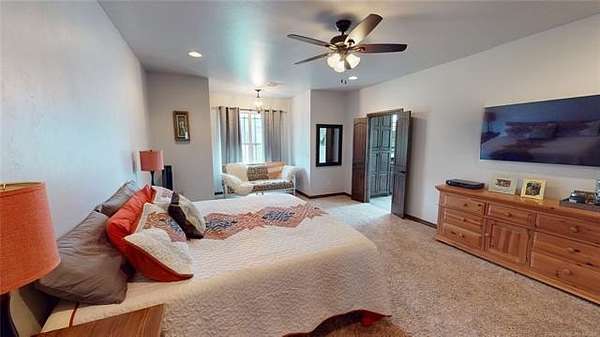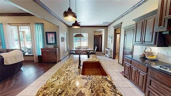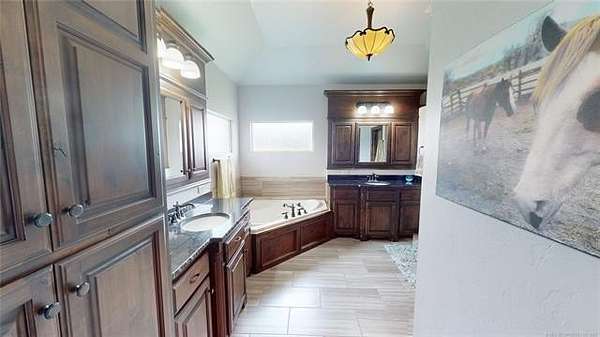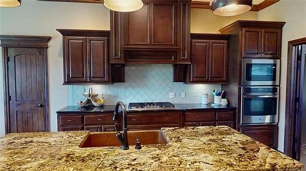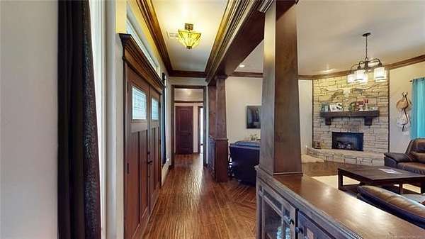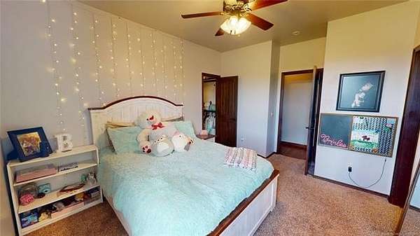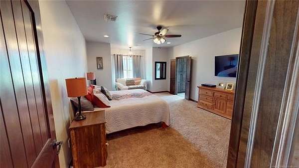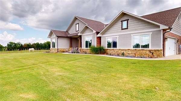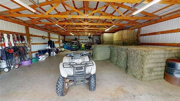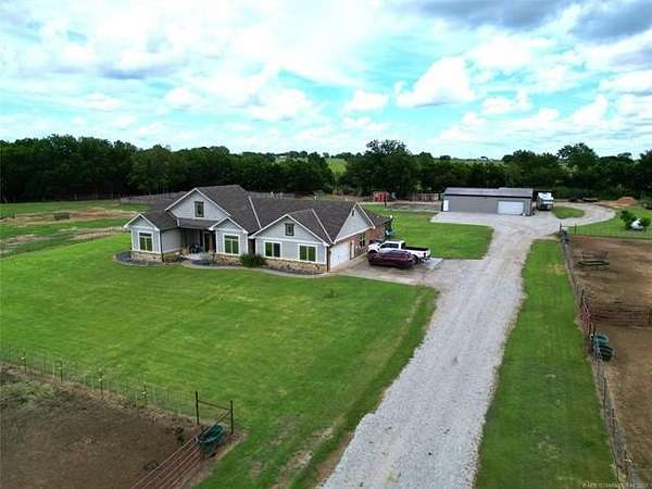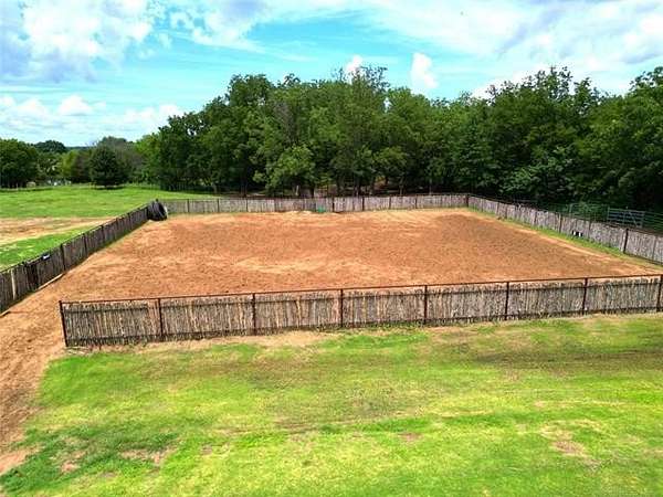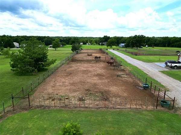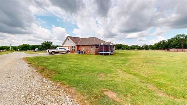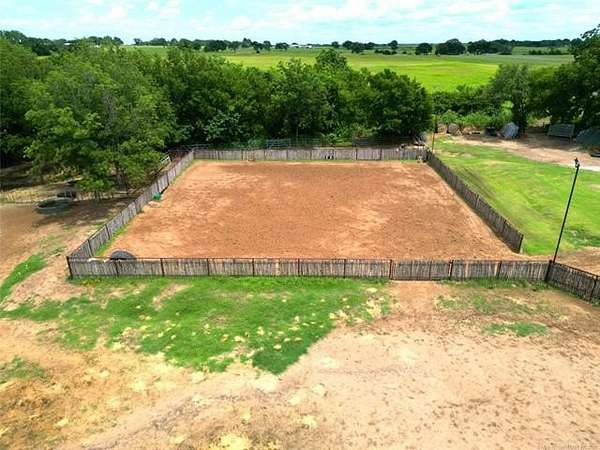 DID YOU NOTICE THE IMPROVED PRICE!!! This is the nicest small ranch I have ever seen, with everything a person could ask for. With 3 - 1/4 acre holding pens 1-3/4 acre holding pen, 1- 1/3 acre pen and 1- 2.75-acre pen. A 100' X 100' lighted arena and a 44' round pen to work your horses. 9 very nice wood and metal stalls with automatic fly suppressant system for those hot summer days. 10+/- pecan trees and a 35' X 50' shop/barn for storing your tack, hay, and maintaining your equipment. Did I mention the house, you are going to want to invite your friends and family over to the large 4-bedroom 3.5-bathroom home with an open floor plan. When entering the double door entry you are greeted by a rock, gas fireplace with 10' ceilings, just to the right is an office or could be a fifth bedroom if needed. A cook's kitchen with a large island/bar, with sink, work area and stove top right across from each other, stainless appliances. granite counter surfaces and ceramic tile floors, set off the plentiful dark stained cabinets with a walk-in pantry. The primary suite has a large bath with separate shower, jetted 2 person tub and double sinks. The large primary closet has upper and lower hanging rods for plenty of storage. The den is tucked in just behind the kitchen for a relaxing place after a long day, the half bath and mud room sit just between the kitchen and den. The 30 X 20 covered patio is a great place to enjoy the outside with connections for electric and cable for your outdoor TV. Bedrooms 2 and 3 share a Jack and Jill bathroom with separate sinks, bedroom 4 has a private bath. When those Oklahoma storms roll in you can take shelter in your own cellar located in the garage.