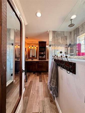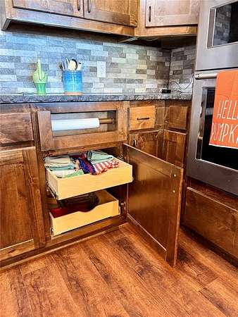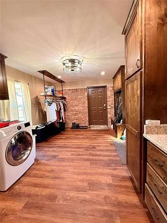 The fully remodeled kitchen (2023) features custom cabinetry, upgraded appliances, a microwave convection oven combo, and a built-in pet water station with pot filler! The mudroom and extended laundry area were added in 2022, and the oversized attached garage includes storage closets.