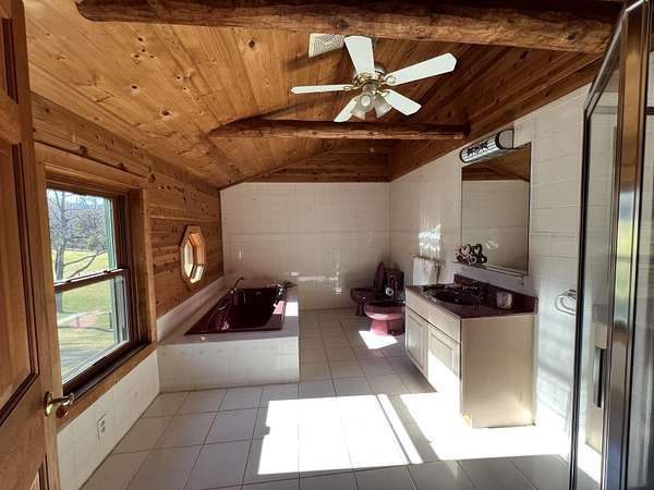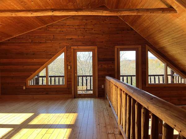 Stunning log cabin home on just over 8 acres!!!! Walk in to thru the front door to the great room and you are met with vaulted ceilings, absolutely beautiful hardwood floors and scenic views off of the back deck. Move into the kitchen where you are met with a Tulikivi soapstone bake oven and copper sinks. Spacious bedrooms all throughout the house. Need even more room, how about a massive second floor loft overlooking the great room and beautiful decking to enjoy evenings under the stars. There's more!!! How about a more than 2,500 square foot 3 car garage that includes a full bath and nearly 500 square feet of additional finished space. Use it as an apartment, office, studio or whatever else you can imagine. Last but not least, how about semi-private access to your own lake. All residents in the New Land development enjoy lake access.