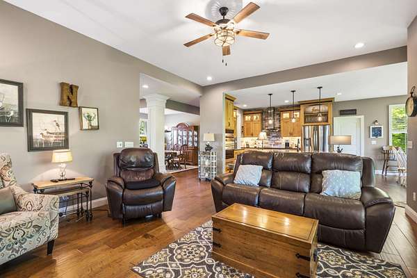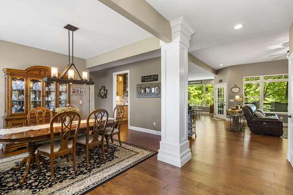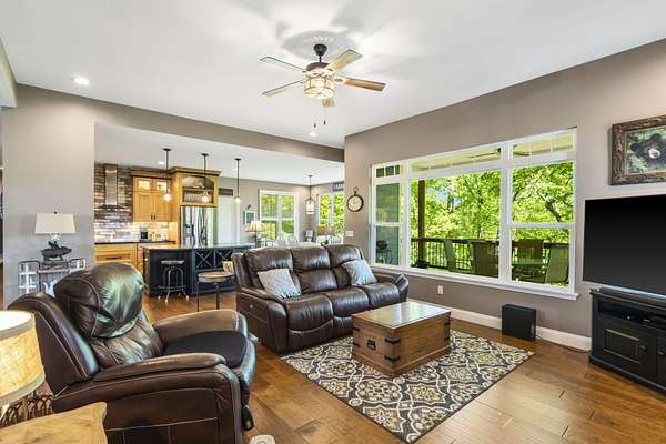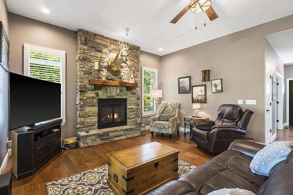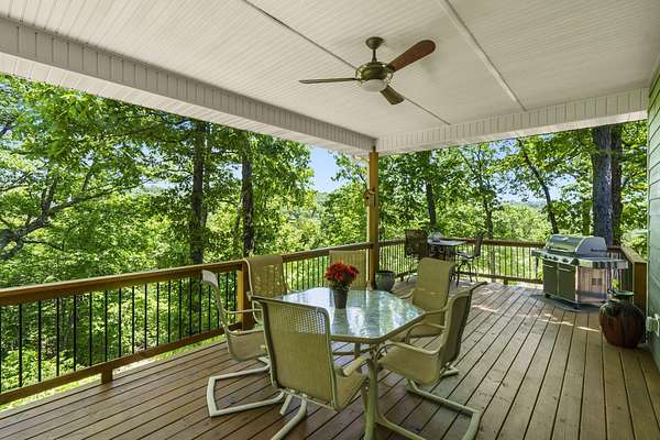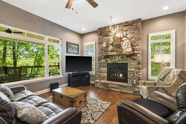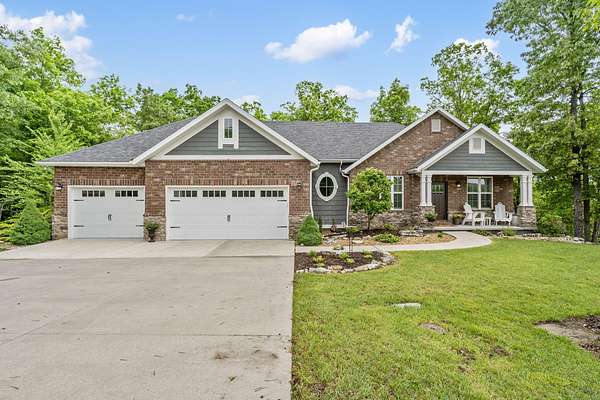 Welcome to your Ozark mountain cul-de-sac retreat in the beautifully manicured Saddlebrooke community! This well-maintained 3 bed, 2.5 bath home sits on 2.4 acres across 3 lots with no homes on either side, behind, or across the street--ensuring peace and privacy. Built in 2014, this two-level home features an open floor plan, 3-car extended length garage, perfect for your boat or camper, and an unfinished walkout basement with 10' ceilings for future expansion. One bedroom is currently used as an office.Enjoy stunning wooded Ozark valley views from the large windows and elevated back deck that leaves you feeling as though you are in a treehouse. The spacious kitchen offers stainless steel appliances, custom cabinetry, and a large island perfect for entertaining. The primary suite includes a large walk-in shower, soaking tub, dual vanities, and wide 36' doorways for easy access. Enjoy your morning coffee on the front porch with amazing views of the valley. The front yard is fully irrigated and landscaped, with a green park-like setting in front and mature oak and cedar forest in back. Saddlebrooke is known for its scenic setting, including a waterfall entrance, peony garden, and beautiful meandering roads. Neighborhood amenities include a pool, playground, pickleball and tennis courts, basketball, pavilions, picnic areas, and creek access for swimming, fishing, or relaxing. Outdoor lovers will enjoy Saddlebrooke community hiking trails, and direct ATV access to Busiek State Forest's 2,700 acres and 18 miles of trails. Community events, clubs, and regular social gatherings add to the vibrant lifestyle. Whether you're seeking a forever home, a serene retreat, or a welcoming community, this Saddlebrooke gem offers it all--comfort, beauty, space, and lifestyle. Come find your peace in this one-of-a-kind Ozark valley home.