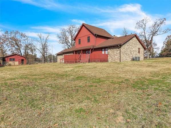 Welcome to your secluded retreat, featuring a tree-lined drive and secure electric gated entrance. This 2,915 SF, custom-built home includes 3 bedrooms and 4 bathrooms sitting on 15.29 acres, striking a perfect balance of space and country living. Enjoy views of the stocked pond and abundant wildlife sitting from your back deck having morning coffee. Inside, a vaulted ceiling and floor-to-ceiling rocked wood-burning fireplace highlight the spacious living area. Original hardwood floors and updated granite countertops run throughout the living and kitchen spaces. The downstairs offers a split-level layout with 2 bedrooms each having their own bathroom. The upstairs offer 1 bedroom, 1 bathroom, and a versatile flex room that could be a second living area. Owned and meticulously maintained by its original owners this custom build is a rare find. The property offers pipe fencing, a private asphalt driveway, and an electric gated entrance for added security. The perfect blend of pasture and woods, a small shop with side shed, and a large loafing shed provides the ideal set-up for your animals. This beautiful property is set at a great value so don't hesitate to schedule your private tour today!!