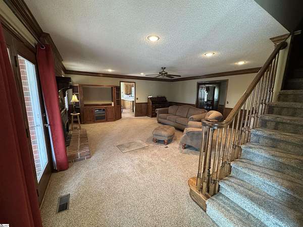 Experience the perfect blend of custom craftsmanship and secluded living, all just minutes from I-85. This isn?t just a house; it?s a masterclass in space. The main-level primary suite is a true retreat, featuring a private sunroom and deck accessible via elegant French doors. Upstairs, two oversized bedrooms?each with dual closets?share a versatile Jack-and-Jill bath with both a shower and a tub/shower combo. The heart of the home boasts a kitchen with solid-surface counters, nestled between formal dining and a sunny breakfast nook. Relax in the massive 20x20 den by the masonry fireplace, or explore the endless potential of the basement?perfect for a workshop or the ultimate "man cave." With garage space for four cars, you finally have room for every hobby.