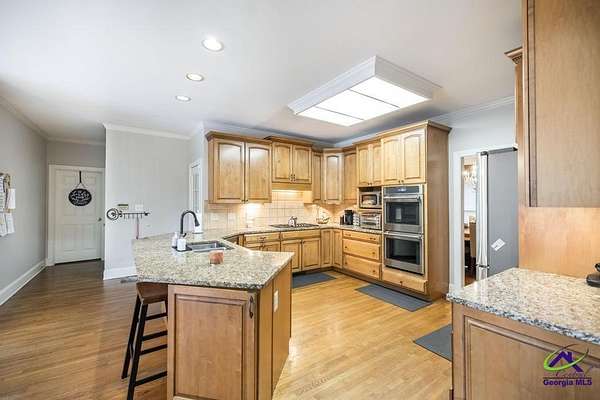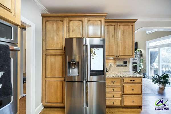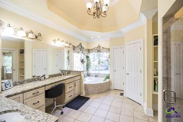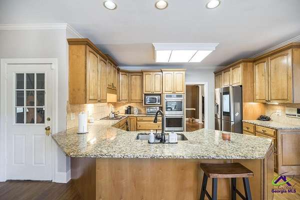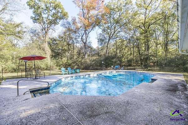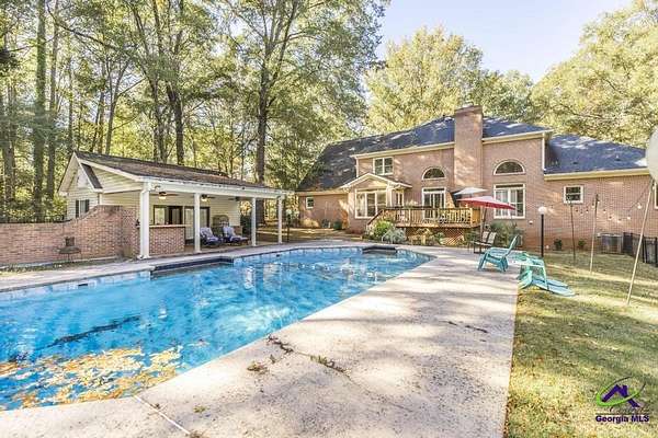 Welcome to 103 Howard Oaks in the prestigious Howard Oaks community of North Macon. Nestled on 2.1 acres, this stunning 3-level home offers over 6,000 sq. ft. of living space, including a fully finished walkout basement, a beautiful pool with pool house, and a 3-car garage with a horseshoe driveway for easy mobility. As you enter the foyer, you're welcome by warm hardwood floors that flow seamlessly throughout the main level. The spacious family room features a beautiful fireplace that creates an inviting and cozy atmosphere. This open-concept space connects effortlessly to the chef's kitchen, complete with a gas cook top, brick backsplash, granite countertops, and rich walnut cabinetry. The kitchen also offers a sunny breakfast area framed by bay windows. Just off the kitchen is the formal dining room, along with an additional living room/keeping room that provides flexibility for entertaining or everyday relaxation. The main-level primary suite is a private retreat with generous space and a spa-like ensuite featuring a jetted tub, granite shower, and dual vanities. Also on the main level: an oversized laundry room with storage, a convenient half bath, and access to the 3-car garage. The upper level offers three spacious bedrooms-two with private ensuites. The third bedroom has direct access to a full bath also accessible from the hallway. Completing this level is a massive bonus room, featuring built-in cabinetry and abundant storage-perfect as a game room, media room, office suite, or multifunction space. The walkout basement provides approx. 1,447 sq. ft. of finished living area (plus an additional 137 sq. ft. of unfinished storage) and includes a kitchenette, full bathroom with shower, and multiple storage rooms-ideal for in-law/guest suite potential or extended living. Step outside to enjoy your own backyard oasis. The in-ground pool and fully equipped pool house-complete with bar area and bathroom-set the stage for summer fun and effortless entertaining. This home truly checks every box-space, privacy, functionality, and location. Don't miss the opportunity to make this exceptional property your own.