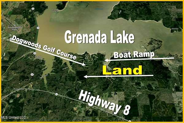 Directions: From the I-55 Grenada Exit 206 go East on Hwy 8 for 6.8 Mi. then Left towards Hugh White State Park onto Hugh White State Park Rd. for 1.1 Mi. to the Land on the left. A close Street address for your GPS is 800 Hugh White State Park Rd, Grenada MS 38901